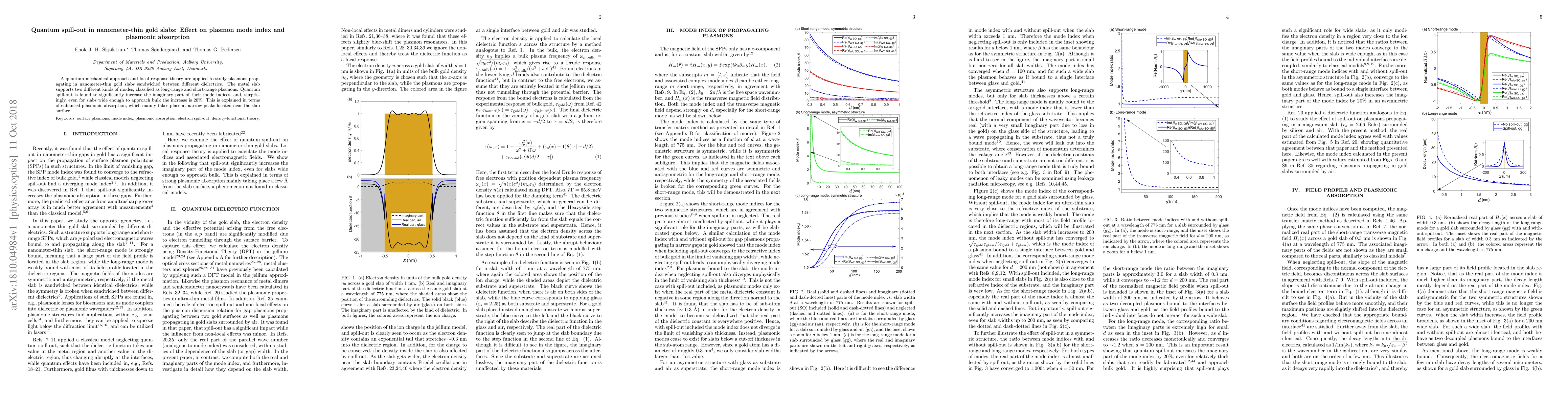 This study uses quantum mechanical and local response theory to investigate plasmon modes in nanometer-thin gold slabs, revealing that quantum spill-out significantly boosts the imaginary part of the mode indices by up to 20%, even in relatively wide slabs, due to enhanced plasmonic absorption near the surface.