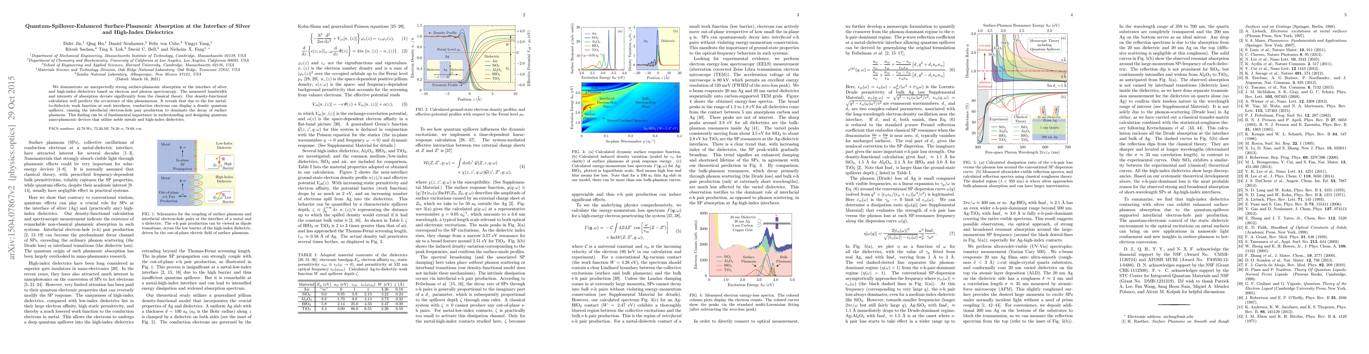 This paper demonstrates strong quantum-spillover-enhanced surface-plasmonic absorption at the interface of silver and high-index dielectrics, deviating from classical theory. Density-functional calculations show that quantum spillover due to low work function leads to dominant electron-hole pair production, crucial for designing advanced quantum nano-plasmonic devices.