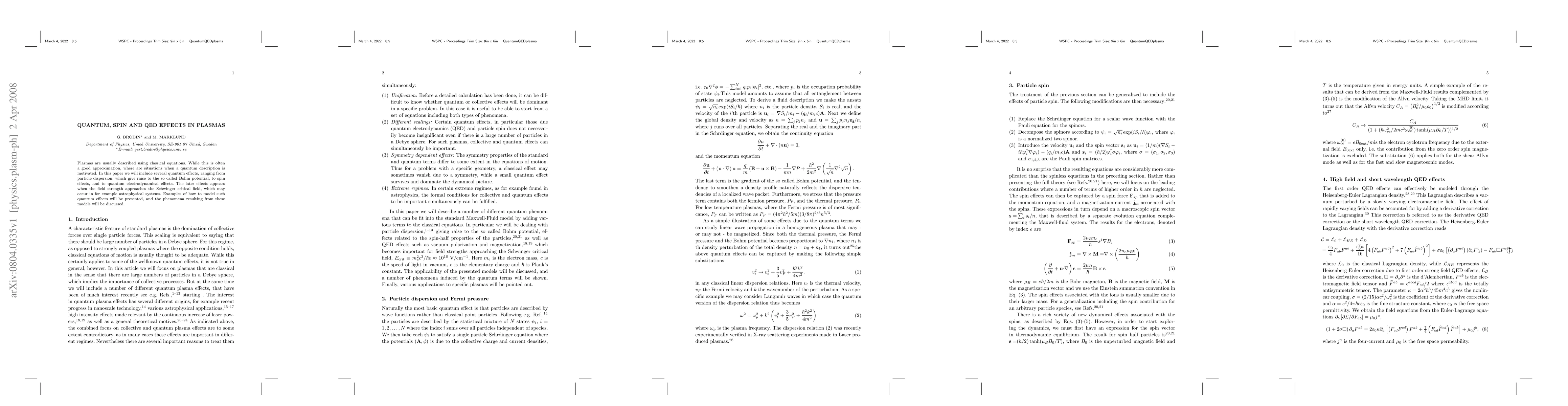 The paper presents a systematic approach to incorporate quantum, spin, and QED effects into plasma dynamics models, providing modified Maxwell-Fluid equations and illustrative examples of linear wave propagation.