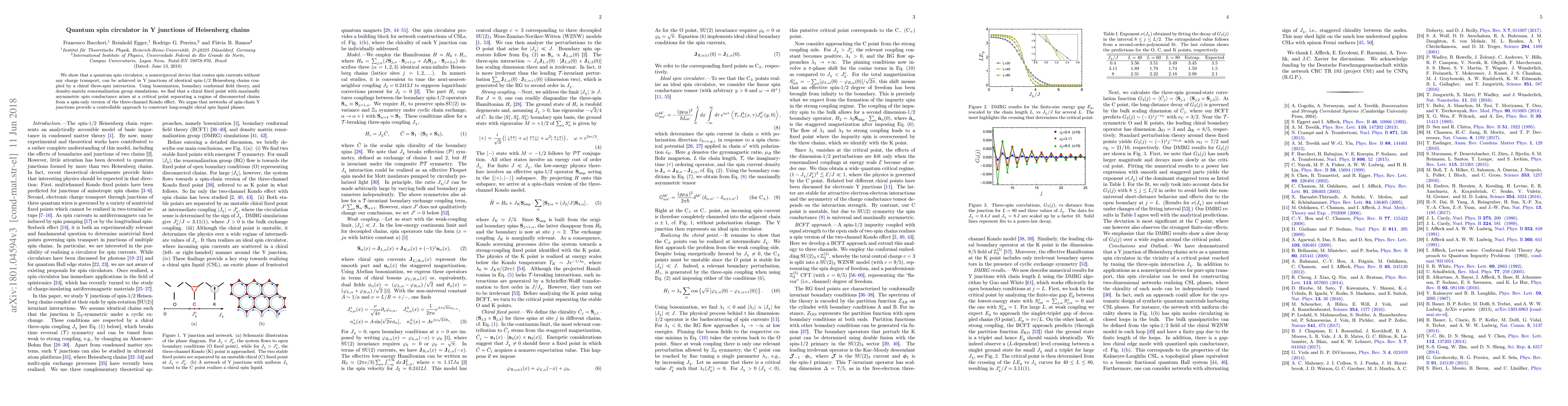 This paper demonstrates the creation of a quantum spin circulator in Y junctions of spin-$1/2$ Heisenberg chains via chiral three-spin interactions. The study reveals a critical point leading to asymmetric spin conductance, suggesting a pathway to construct chiral spin liquid phases.