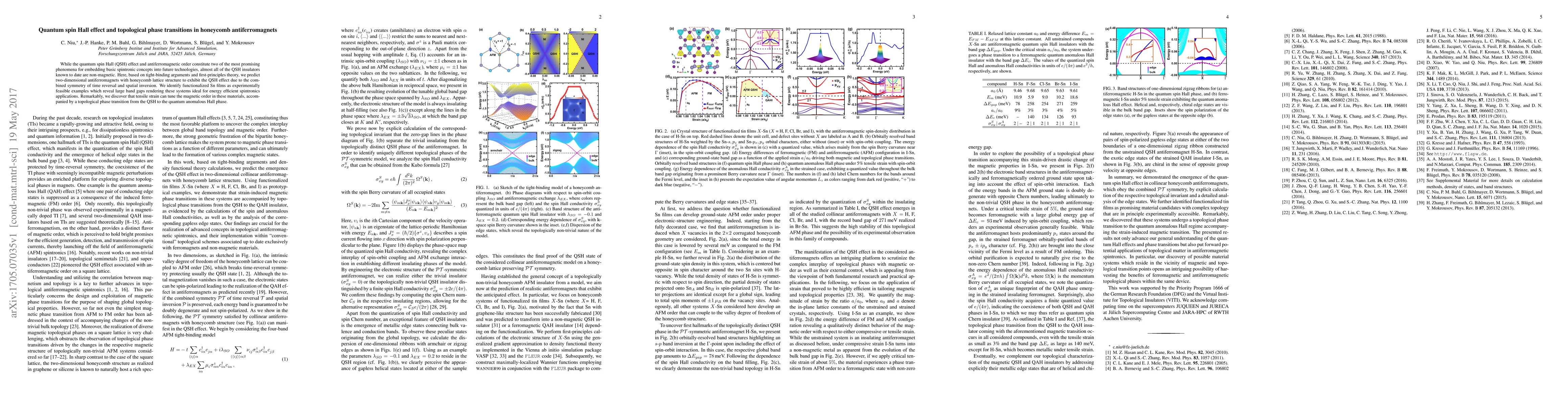 This paper predicts that two-dimensional honeycomb antiferromagnets, exemplified by functionalized Sn films, exhibit the quantum spin Hall effect due to combined time reversal and spatial inversion symmetries. It further reveals that tensile strain can induce a topological phase transition from the quantum spin Hall to the quantum anomalous Hall phase.