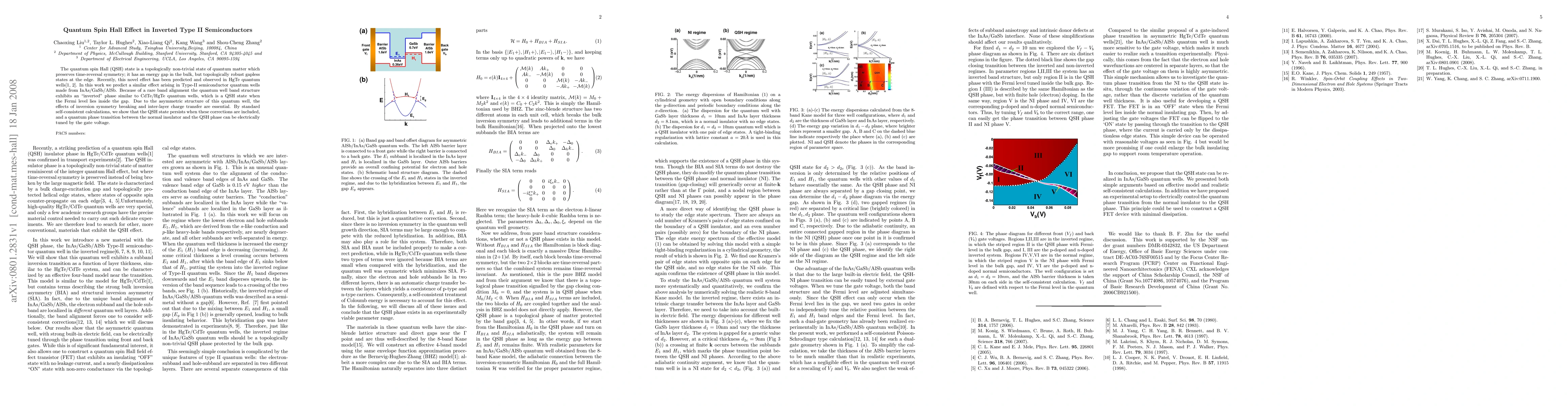 This paper predicts the quantum spin Hall effect in inverted Type II semiconductor quantum wells made from InAs/GaSb/AlSb, demonstrating that the effect persists despite inversion symmetry breaking and inter-layer charge transfer. The quantum phase transition between the normal insulator and the QSH phase can be electrically tuned via gate voltage.