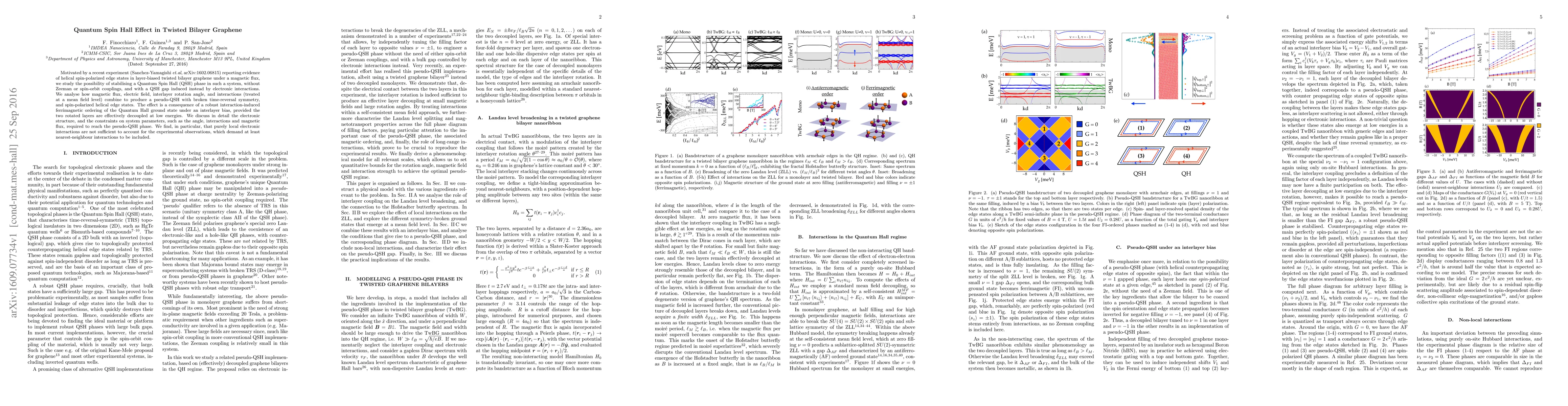 The research investigates the stabilization of a Quantum Spin Hall phase in twisted bilayer graphene driven by electronic interactions rather than external fields, revealing conditions for a pseudo-QSH phase with helical spin-polarized edge states. It finds that local interactions alone are insufficient, necessitating nearest-neighbour interactions to match experimental observations.