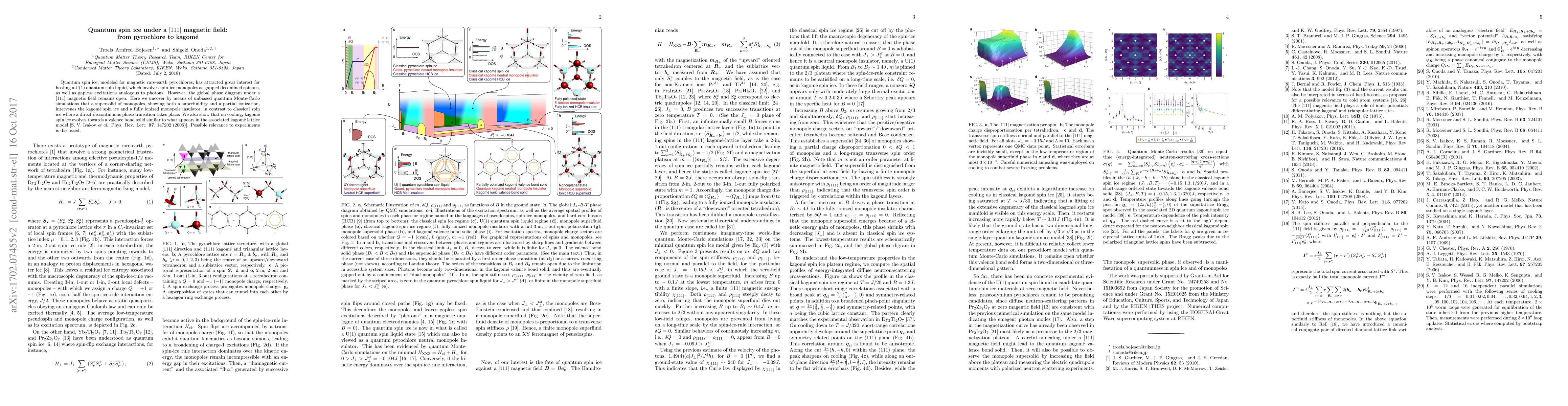 This study reveals that quantum spin ice in magnetic rare-earth pyrochlores undergoes a transition from pyrochlore to kagomé spin ice under a [111] magnetic field, featuring a supersolid phase of monopoles with superfluidity and partial ionization, unlike classical spin ice. The research also indicates a cooling-induced evolution towards a valence bond solid akin to the kagomé lattice model.