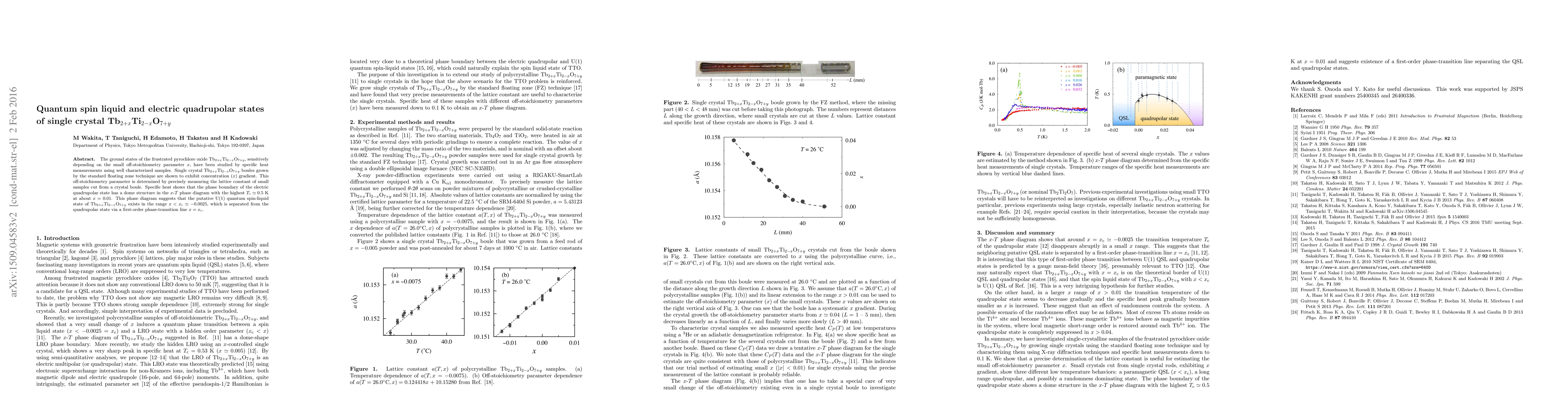 Researchers studied the properties of a pyrochlore oxide with varying off-stoichiometry parameters, finding that it exhibits a quantum spin-liquid state below a critical concentration range, separated from an electric quadrupolar state by a first-order phase transition.