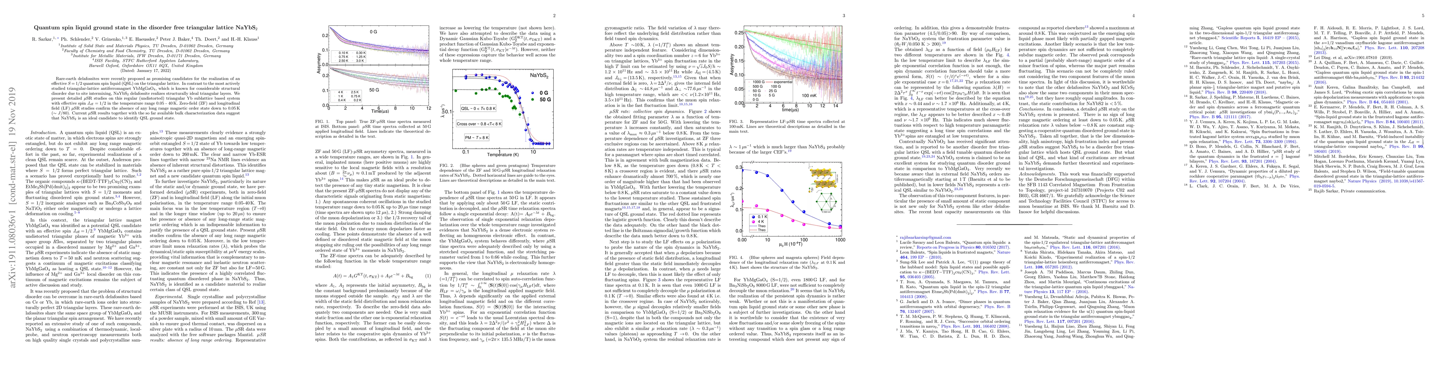 This paper reports on $\mu$SR studies of NaYbS$_2$, a structurally ideal triangular lattice system, which shows no long-range magnetic order down to 0.05K, suggesting it may be a candidate for a quantum spin liquid ground state. The absence of structural disorder in NaYbS$_2$ makes it a promising material for studying quantum spin liquids.