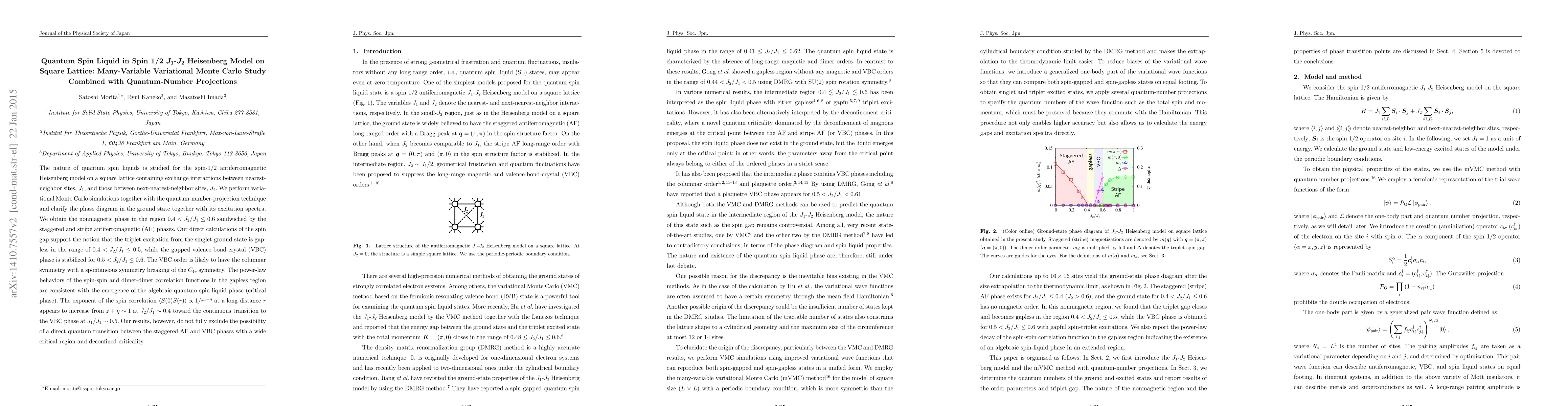 The nature of quantum spin liquids is studied for the spin-$1/2$ antiferromagnetic Heisenberg model on a square lattice containing exchange interactions between nearest-neighbor sites, $J_1$, and those between next-nearest-neighbor sites, $J_2$. We perform variational Monte Carlo simulations together with the quantum-number-projection technique and clarify the phase diagram in the ground state together with its excitation spectra. We obtain the nonmagnetic phase in the region $0.4< J_2/J_1\le 0.6$ sandwiched by the staggered and stripe antiferromagnetic (AF) phases. Our direct calculations of the spin gap support the notion that the triplet excitation from the singlet ground state is gapless in the range of $0.4 < J_2/J_1 \le 0.5$, while the gapped valence-bond-crystal (VBC) phase is stabilized for $0.5 < J_2/J_1 \le 0.6$. The VBC order is likely to have the columnar symmetry with a spontaneous symmetry breaking of the $C_{4v}$ symmetry. The power-law behaviors of the spin-spin and dimer-dimer correlation functions in the gapless region are consistent with the emergence of the algebraic quantum-spin-liquid phase (critical phase). The exponent of the spin correlation $\langle S(0)S(r)\rangle \propto 1/r^{z+\eta}$ at a long distance $r$ appears to increase from $z+\eta\sim 1$ at $J_2/J_1\sim0.4$ toward the continuous transition to the VBC phase at $J_1/J_1\sim0.5$. Our results, however, do not fully exclude the possibility of a direct quantum transition between the staggered AF and VBC phases with a wide critical region and deconfined criticality.