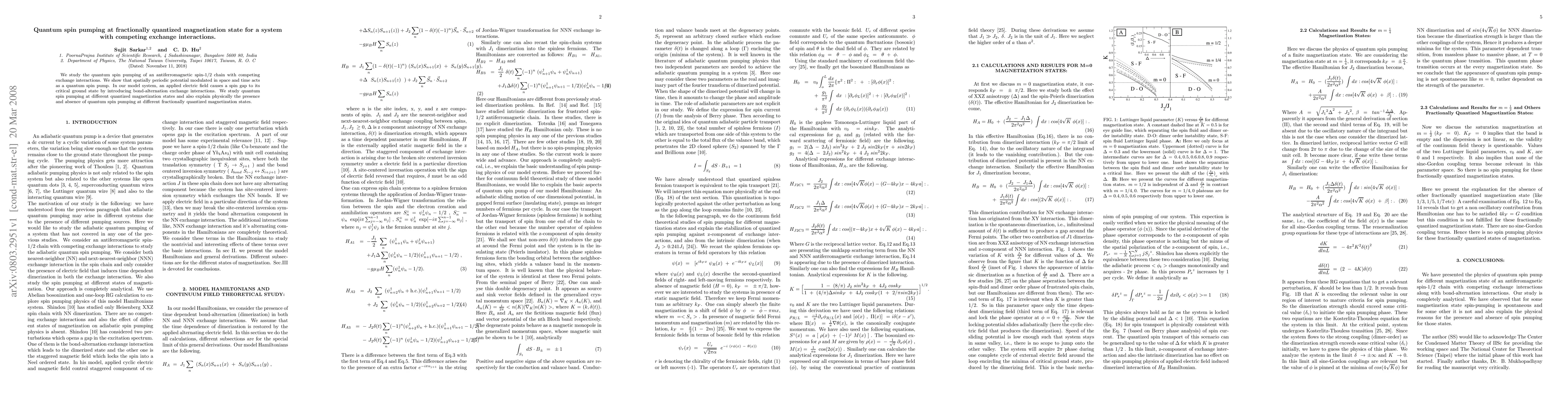 This paper investigates quantum spin pumping in an antiferromagnetic spin-1/2 chain with competing exchange interactions, demonstrating that a spatially periodic potential can act as a quantum spin pump. The study reveals the effects of an electric field on the system's magnetization states and explains the occurrence of spin pumping at various fractionally quantized magnetization levels.