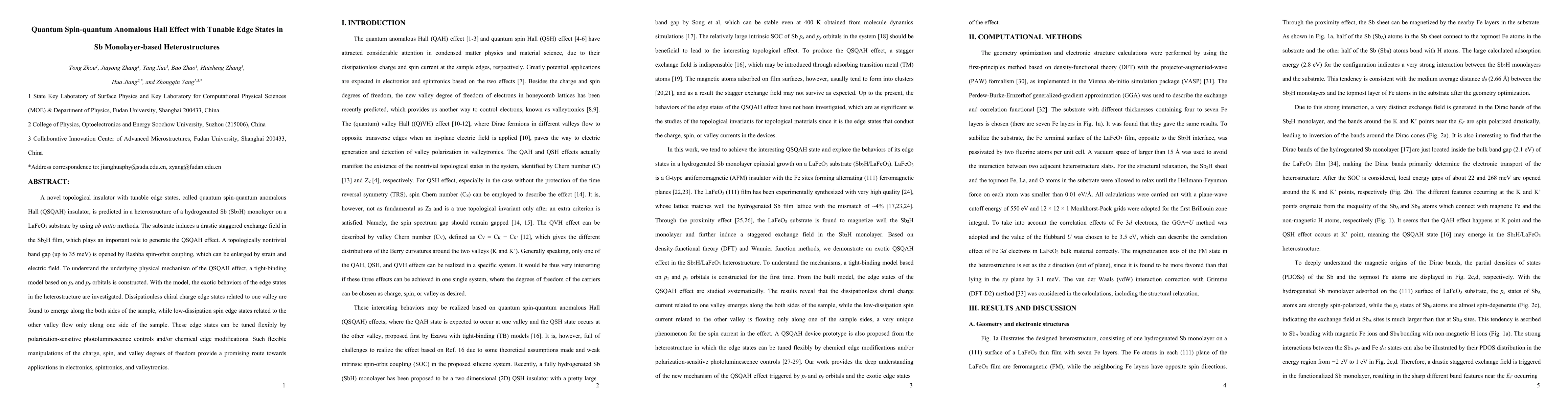 This paper predicts a novel quantum spin-quantum anomalous Hall (QSQAH) insulator in a hydrogenated Sb monolayer on a LaFeO3 substrate, showcasing tunable edge states. The study reveals dissipationless chiral charge and low-dissipation spin edge states, which can be manipulated for potential applications in electronics, spintronics, and valleytronics.