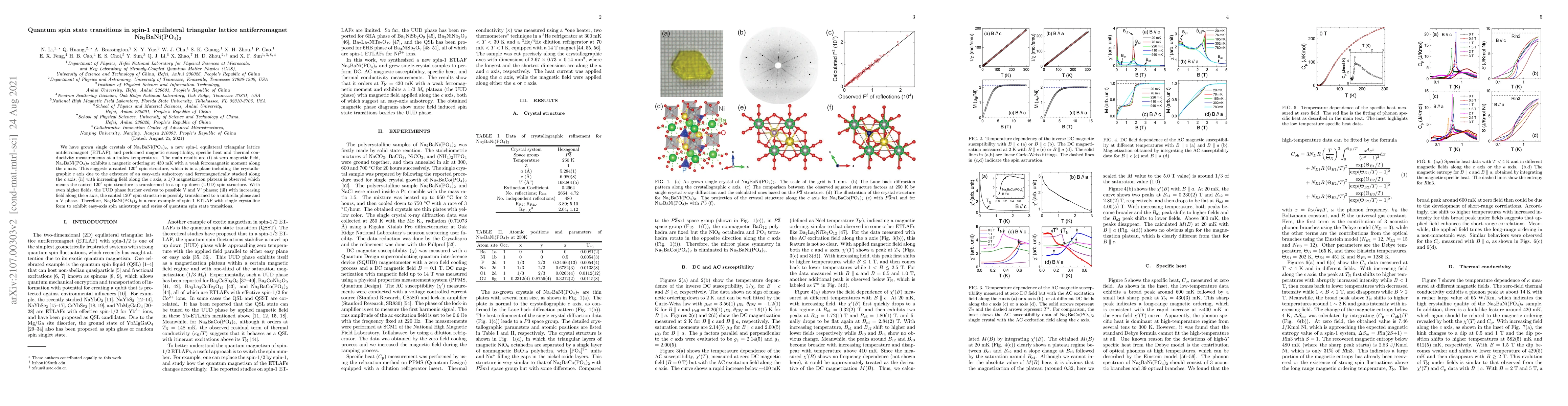 This study investigates quantum spin state transitions in Na$_2$BaNi(PO$_4$)$_2$, a spin-1 equilateral triangular lattice antiferromagnet. At zero field, it exhibits canted 120$^\circ$ spin ordering with weak ferromagnetic moment along the $c$ axis; with increasing field, it shows transitions to 1/3 magnetization plateau and further to V and V' phases.