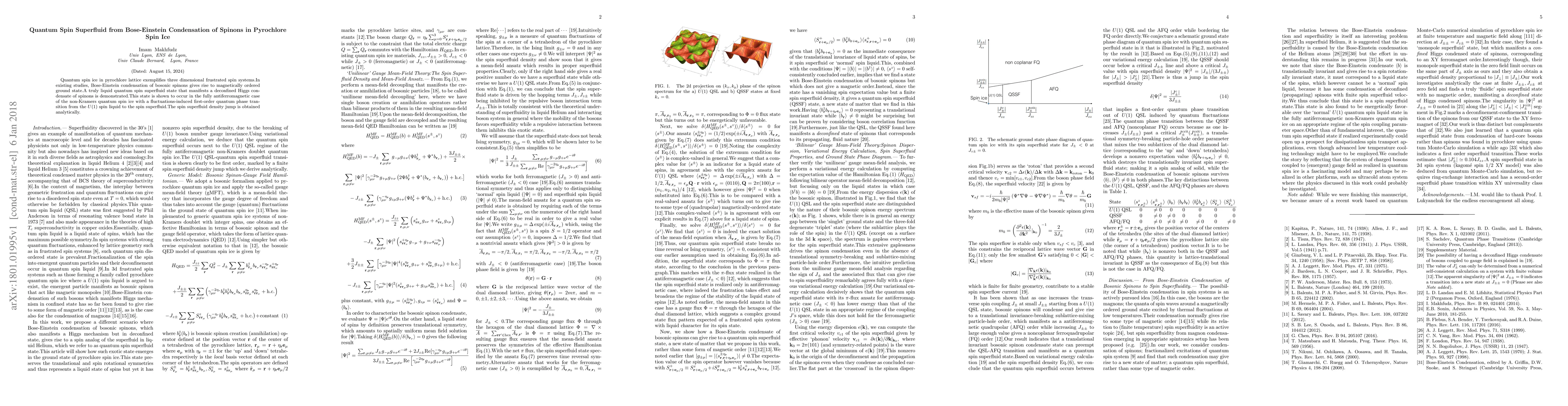 This paper demonstrates the emergence of a quantum spin superfluid state in pyrochlore spin ice, characterized by a deconfined Higgs condensate of spinons, arising from a fluctuations-induced first-order quantum phase transition from a $U(1)$ spin liquid in the fully antiferromagnetic regime. Analytical methods reveal a spin superfluid density jump.