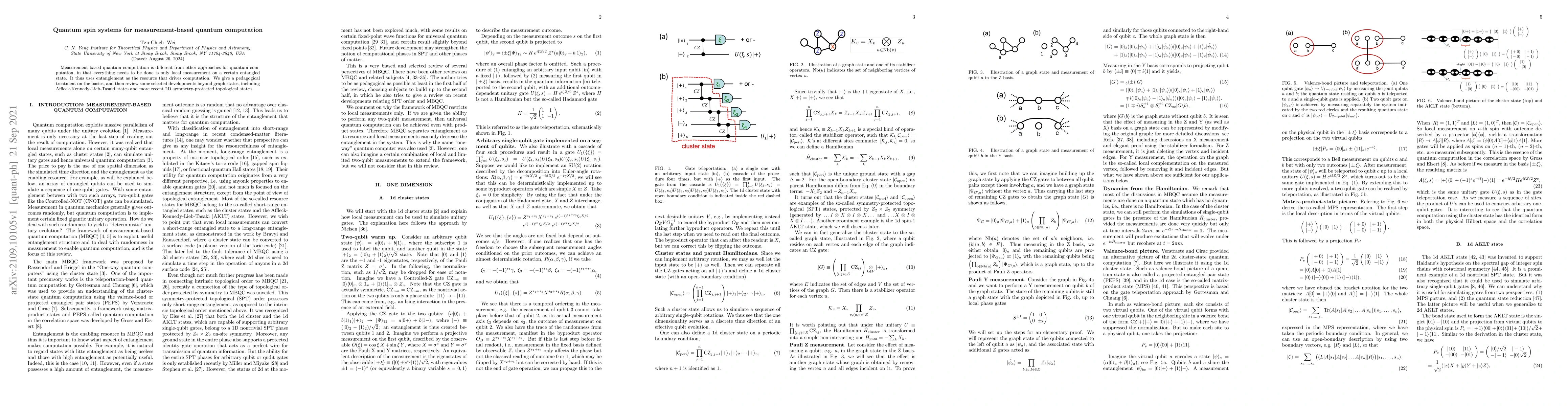 This paper provides an introduction to measurement-based quantum computation, emphasizing local measurements on entangled states, and reviews advancements beyond graph states, including Affleck-Kennedy-Lieb-Tasaki states and 2D symmetry-protected topological states.