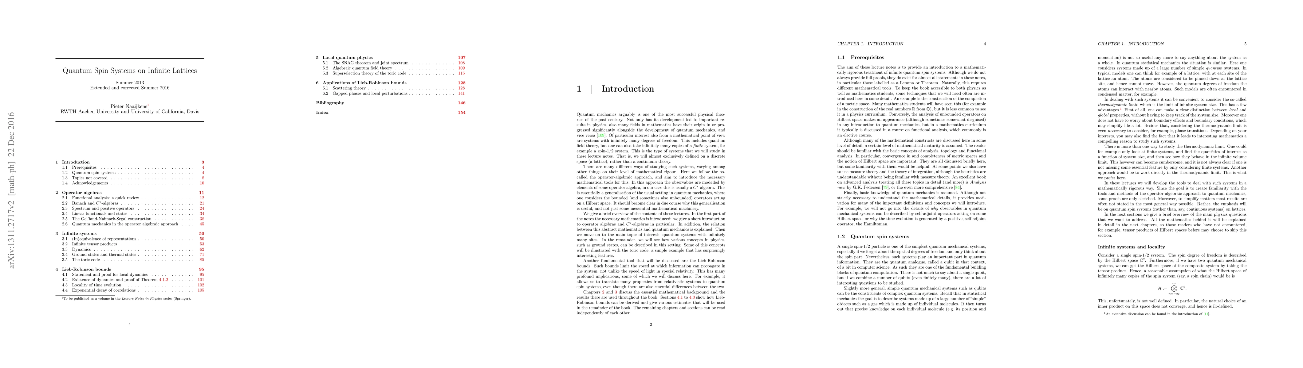 This is an extended and corrected version of lecture notes originally written for a one semester course at Leibniz University Hannover. The main aim of the notes is to give an introduction to the mathematical methods used in describing discrete quantum systems consisting of infinitely many sites. Such systems can be used, for example, to model the materials in condensed matter physics. The notes provide the necessary background material to access recent literature in the field. Some of these recent results are also discussed. The contents are roughly as follows: (1) quick recap of essentials from functional analysis, (2) introduction to operator algebra, (3) algebraic quantum mechanics, (4) infinite systems (quasilocal algebra), (5) KMS and ground states, (6) Lieb-Robinson bounds, (7) algebraic quantum field theory, (8) superselection sectors of the toric code, (9) Haag-Ruelle scattering theory in spin systems, (10) applications to gapped phases. The level is aimed at students who have at least had some exposure to (functional) analysis and have a certain mathematical "maturity".