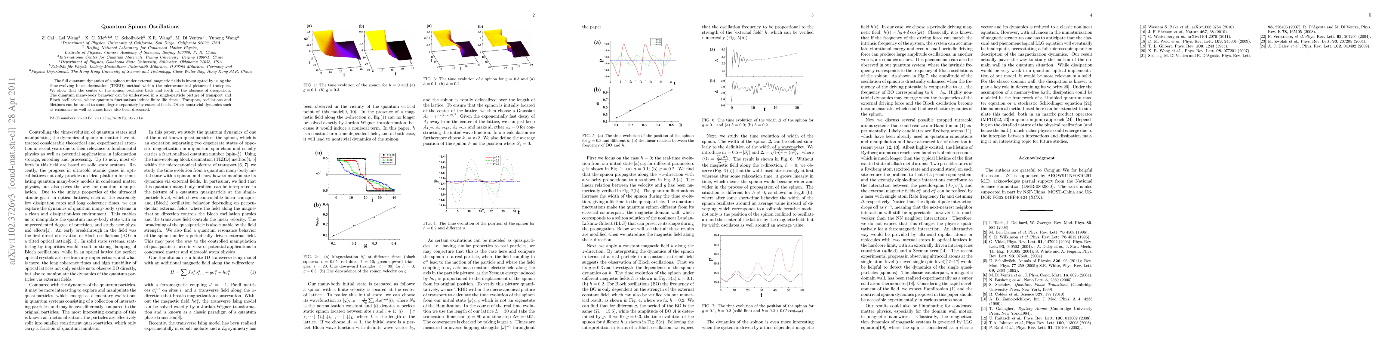 The research employs the time-evolving block decimation (TEBD) method within the microcanonical picture of transport to investigate the full quantum dynamics of a spinon under external magnetic fields.