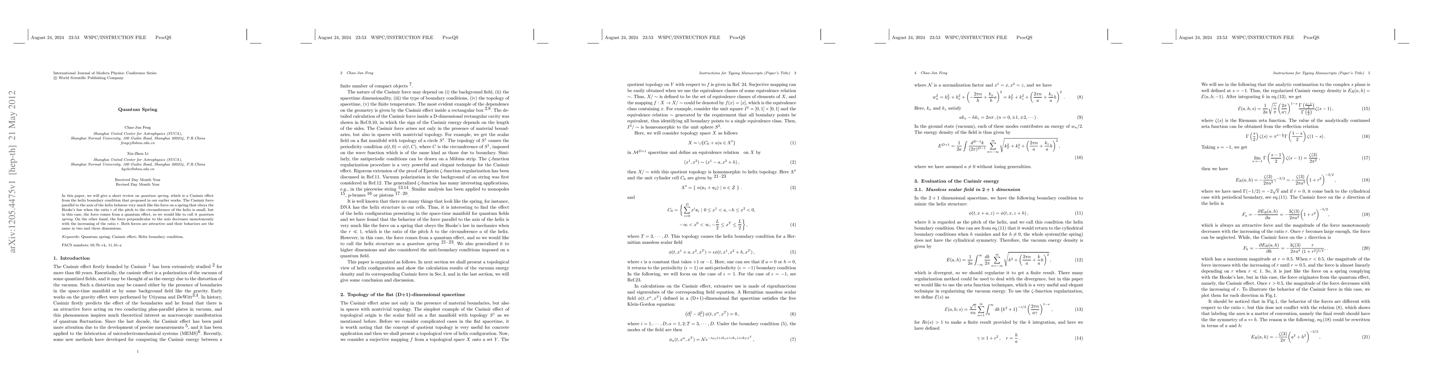 This paper reviews the "quantum spring," a quantum mechanical Casimir effect along a helix, which behaves like a spring obeying Hooke's law when the pitch-to-circumference ratio is small. The perpendicular Casimir force decreases with increasing ratio and both forces are attractive, exhibiting similar behavior in two and three dimensions.
