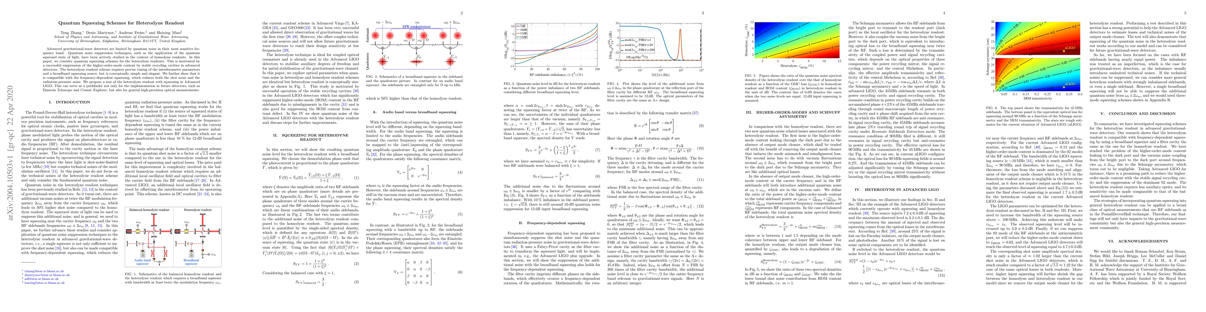This paper explores quantum squeezing schemes for heterodyne readouts to suppress quantum noise in advanced gravitational-wave detectors, proposing a method that combines precise interferometer tuning and broadband squeezing sources. The approach is shown to be compatible with frequency-dependent squeezing, reducing both shot and radiation-pressure noise, and suggests a test implementation in Advanced LIGO as a precursor for future detectors.