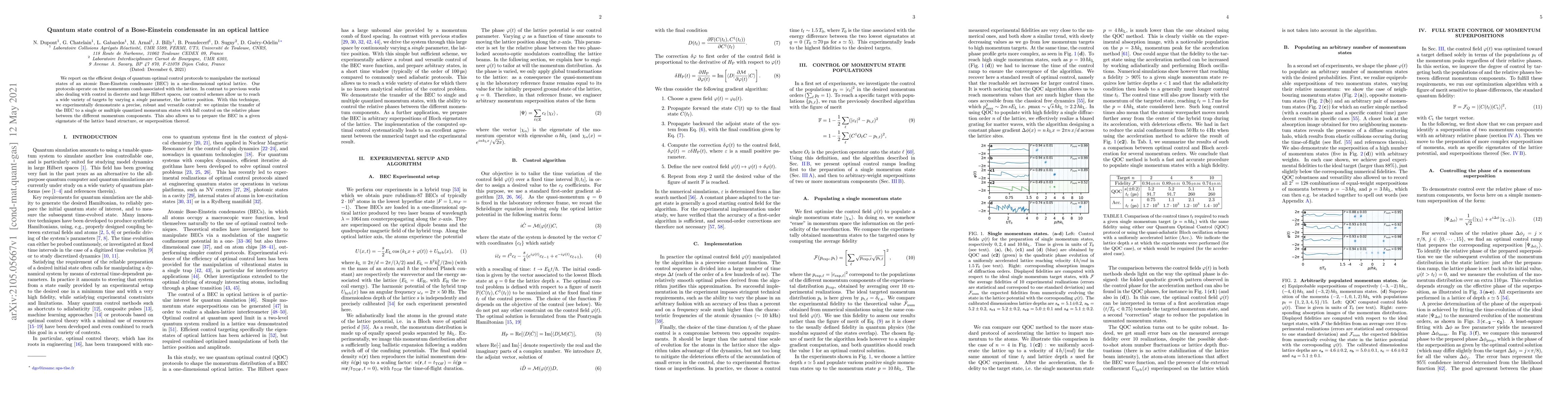 This paper presents quantum optimal control protocols for manipulating the motional states of a Bose-Einstein condensate in an optical lattice, optimizing the transfer to quantized momentum states, and demonstrating precise, robust control over the relative phase and preparation of lattice band eigenstates.