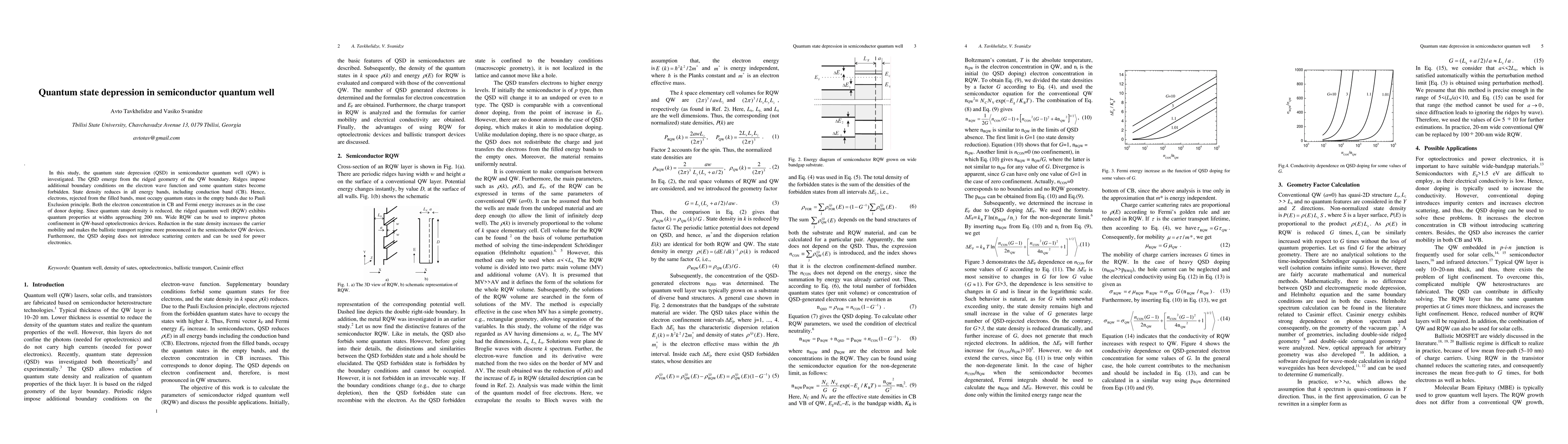 In this study, the quantum state depression (QSD) in semiconductor quantum well (QW) is investigated. The QSD emerge from the ridged geometry of the QW boundary. Ridges impose additional boundary conditions on the electron wave function and some quantum states become forbidden. State density reduces in all energy bands, including conduction band (CB). Hence, electrons, rejected from the filled bands, must occupy quantum states in the empty bands due to Pauli Exclusion principle. Both the electron concentration in CB and Fermi energy increases as in the case of donor doping. Since quantum state density is reduced, the ridged quantum well (RQW) exhibits quantum properties at widths approaching 200 nm. Wide RQW can be used to improve photon confinement in QW-based optoelectronics devices. Reduction in the state density increases the carrier mobility and makes the ballistic transport regime more pronounced in the semiconductor QW devices. Furthermore, the QSD doping does not introduce scattering centers and can be used for power electronics.