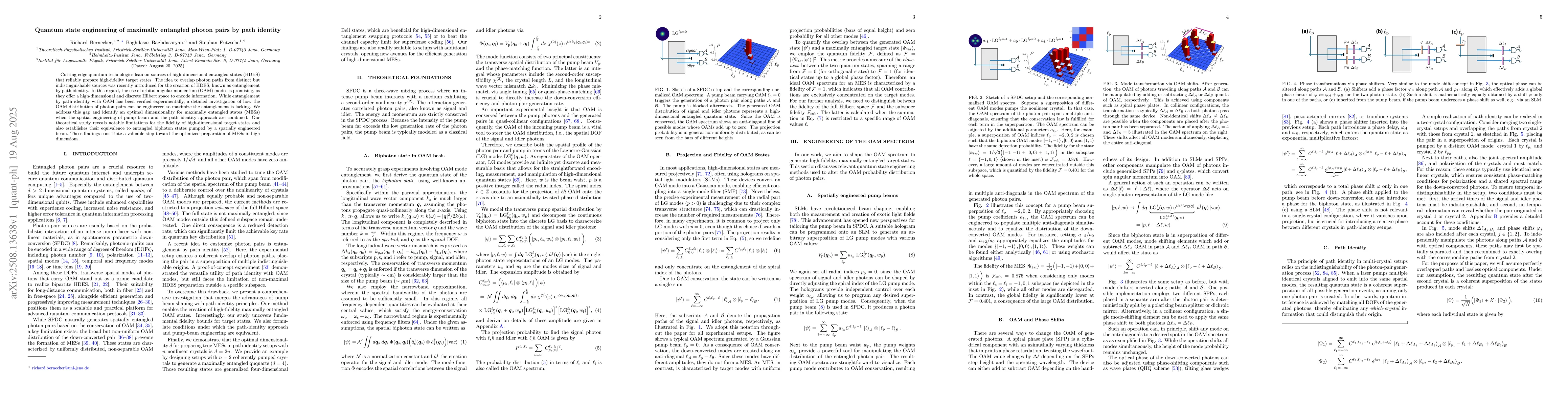 The paper presents a detailed theoretical study on engineering high-dimensional maximally entangled states using path identity with OAM modes, identifying optimal conditions and limitations for fidelity.