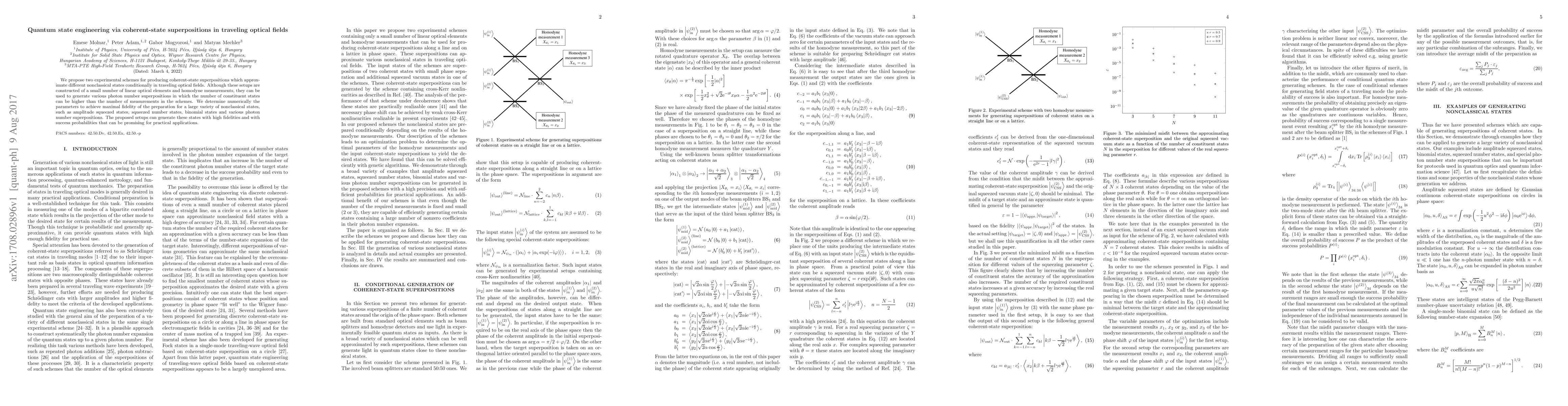 This paper proposes two experimental schemes using linear optical elements and homodyne measurements to generate coherent-state superpositions approximating various nonclassical states in traveling optical fields. The setups achieve high fidelity and success probabilities for practical applications, making them promising for generating states like amplitude squeezed states, squeezed number states, and binomial states.
