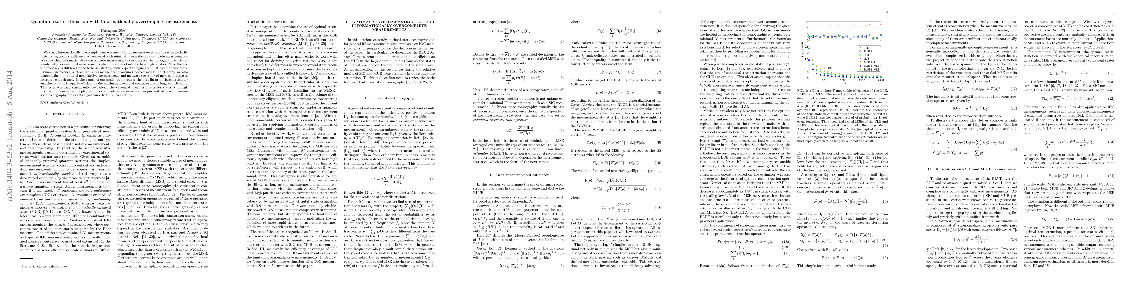 This paper investigates the use of informationally overcomplete measurements for quantum state estimation, demonstrating their potential to enhance tomographic efficiency for highly pure states. However, it concludes that these measurements still fall short of optimal figures of merit, highlighting the need for adaptive measurement schemes and introducing a best linear unbiased estimator that performs comparably to the maximum likelihood estimator in large samples.
