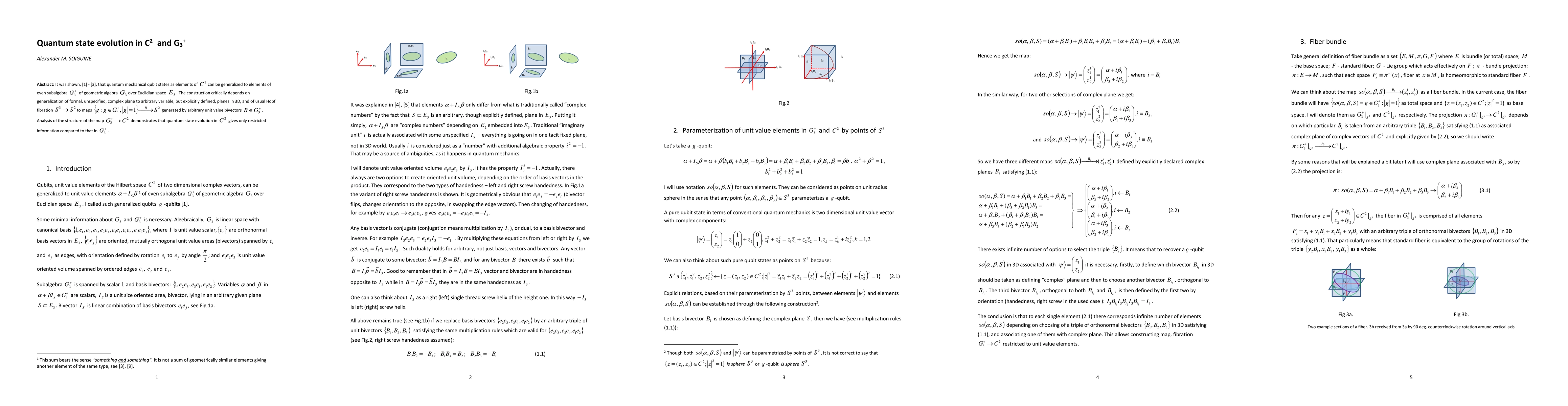 It was shown that quantum mechanical qubit states as elements of two dimensional complex space can be generalized to elements of even subalgebra of geometric (Clifford) algebra over Euclidian space. The construction critically depends on generalization of formal, unspecified, complex plane to arbitrary variable, but explicitly defined, planes in 3D, and of usual Hopf fibration to maps generated by arbitrary unit value bivectors. Analysis of the new structure demonstrates that quantum state evolution in terms of two dimensional complex space gives only restricted information compared to that in even geometric algebra.