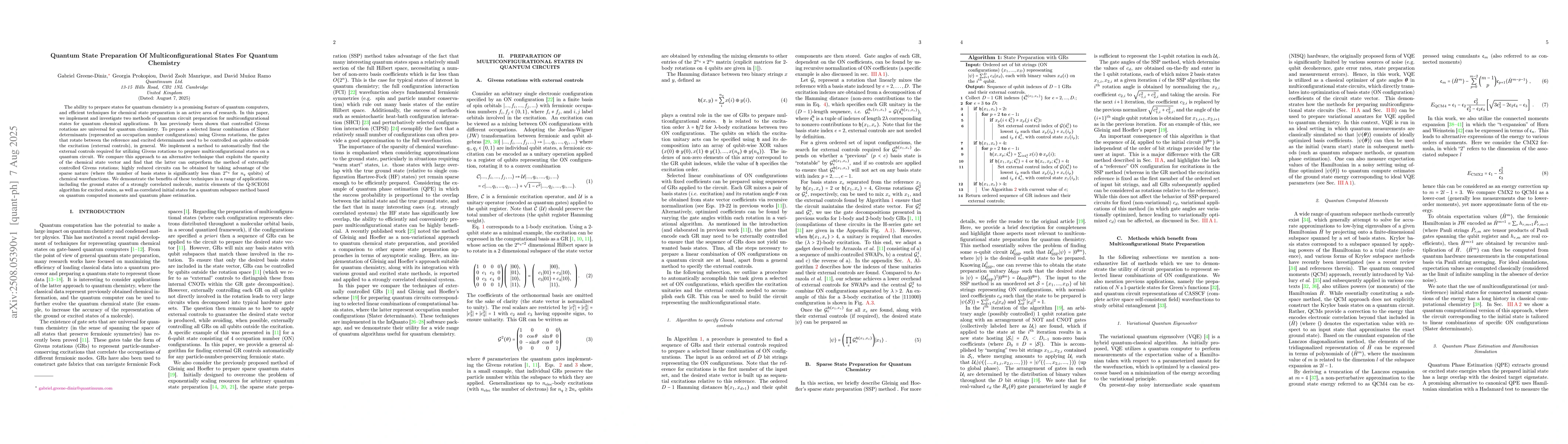 The ability to prepare states for quantum chemistry is a promising feature of quantum computers, and efficient techniques for chemical state preparation is an active area of research. In this paper, we implement and investigate two methods of quantum circuit preparation for multiconfigurational states for quantum chemical applications. It has previously been shown that controlled Givens rotations are universal for quantum chemistry. To prepare a selected linear combination of Slater determinants (represented as occupation number configurations) using Givens rotations, the gates that rotate between the reference and excited determinants need to be controlled on qubits outside the excitation (external controls), in general. We implement a method to automatically find the external controls required for utilizing Givens rotations to prepare multiconfigurational states on a quantum circuit. We compare this approach to an alternative technique that exploits the sparsity of the chemical state vector and find that the latter can outperform the method of externally controlled Givens rotations; highly reduced circuits can be obtained by taking advantage of the sparse nature (where the number of basis states is significantly less than 2$^{n_q}$ for $n_q$ qubits) of chemical wavefunctions. We demonstrate the benefits of these techniques in a range of applications, including the ground states of a strongly correlated molecule, matrix elements of the Q-SCEOM algorithm for excited states, as well as correlated initial states for a quantum subspace method based on quantum computed moments and quantum phase estimation.