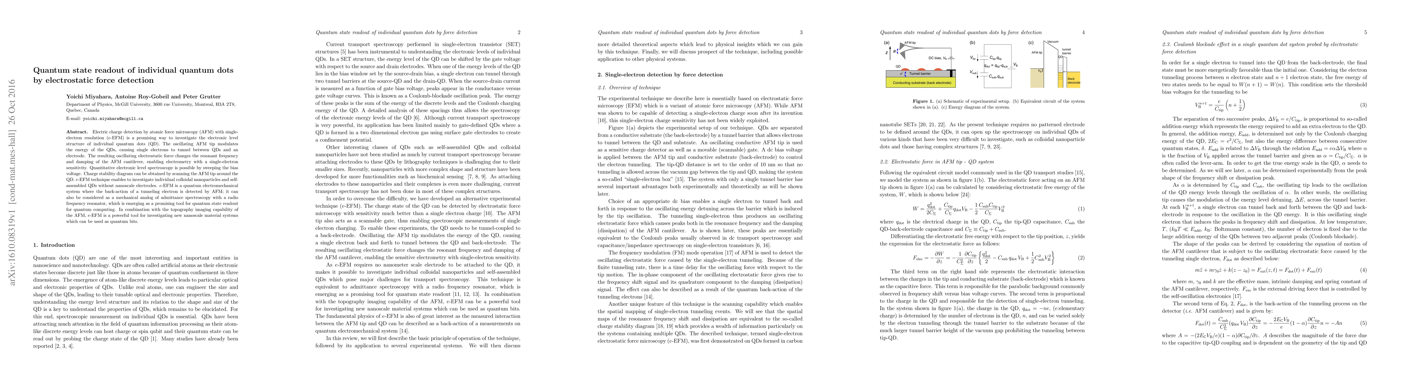 Researchers developed a technique called e-EFM to read out quantum states of individual quantum dots using electrostatic force detection, enabling single-electron sensitivity and topography imaging.