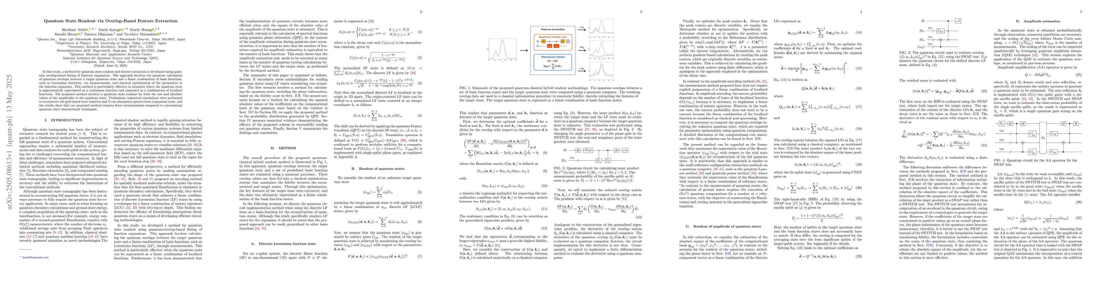 The research develops a quantum state readout method using quantum overlap-based fitting of function expansions, involving quantum calculation of overlaps and classical optimization of parameters in the function expansion.