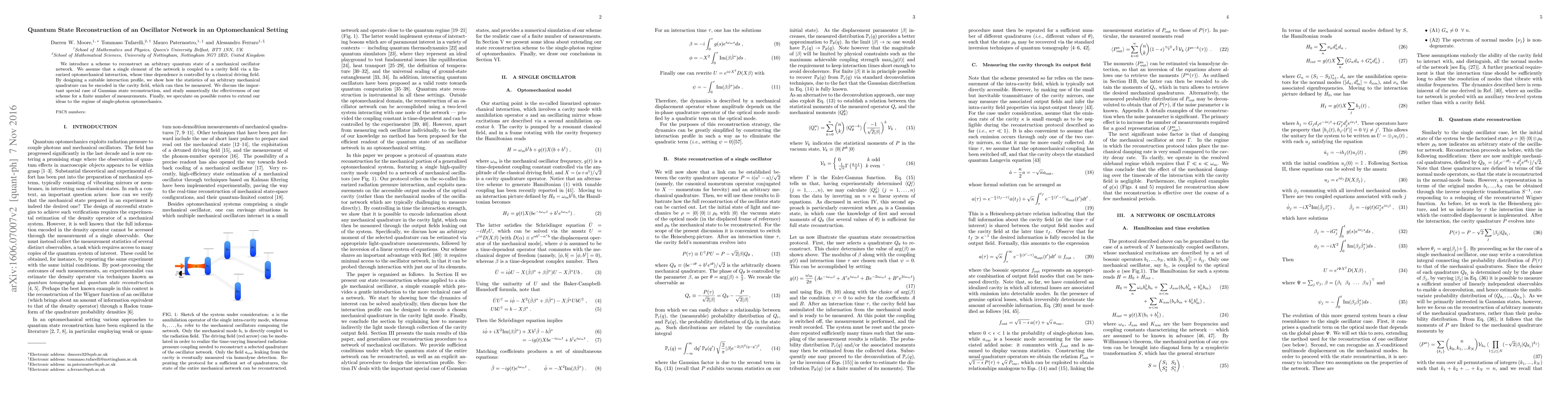 This paper proposes a method to reconstruct the quantum state of a mechanical oscillator network through optomechanical interactions, encoding the statistics of a mechanical quadrature in a cavity field. The scheme is particularly effective for Gaussian states and is numerically tested for finite measurements, with potential extensions to single-photon optomechanics.