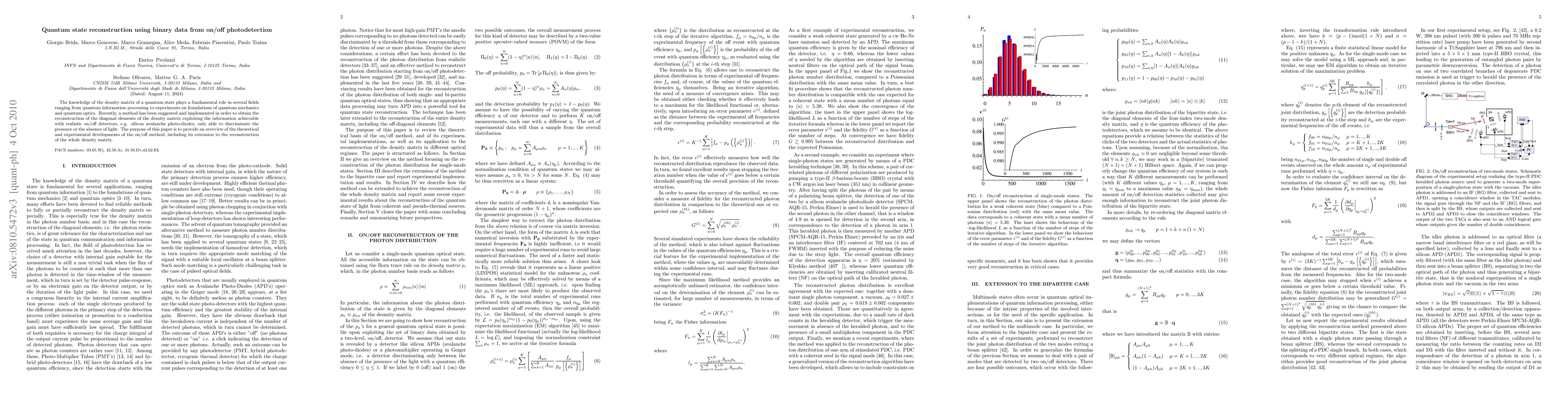 The knowledge of the density matrix of a quantum state plays a fundamental role in several fields ranging from quantum information processing to experiments on foundations of quantum mechanics and quantum optics. Recently, a method has been suggested and implemented in order to obtain the reconstruction of the diagonal elements of the density matrix exploiting the information achievable with realistic on/off detectors, e.g. silicon avalanche photo-diodes, only able to discriminate the presence or the absence of light. The purpose of this paper is to provide an overview of the theoretical and experimental developments of the on/off method, including its extension to the reconstruction of the whole density matrix.