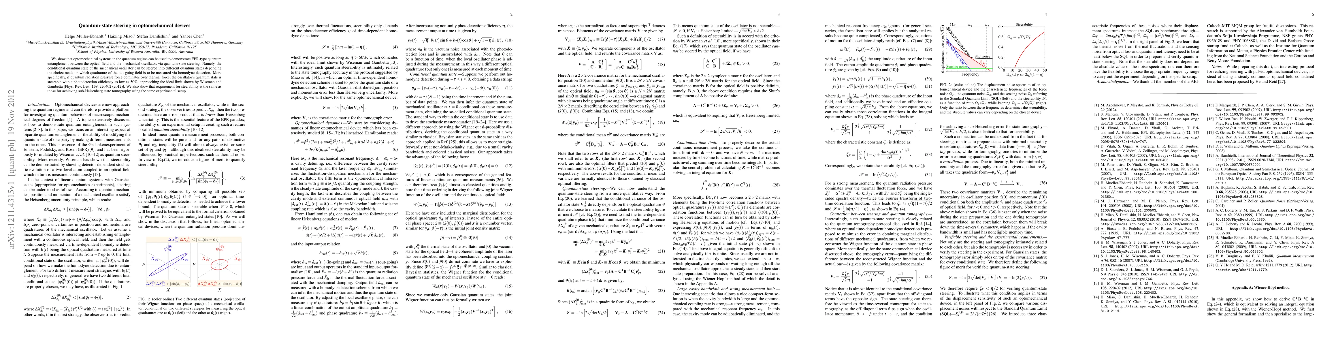 This paper demonstrates quantum-state steering in optomechanical systems, showing entanglement between optical fields and mechanical oscillators. It reveals that the mechanical oscillator's quantum state can be steered based on measurements of the optical field's quadrature, even with low photodetection efficiency, approaching theoretical limits.
