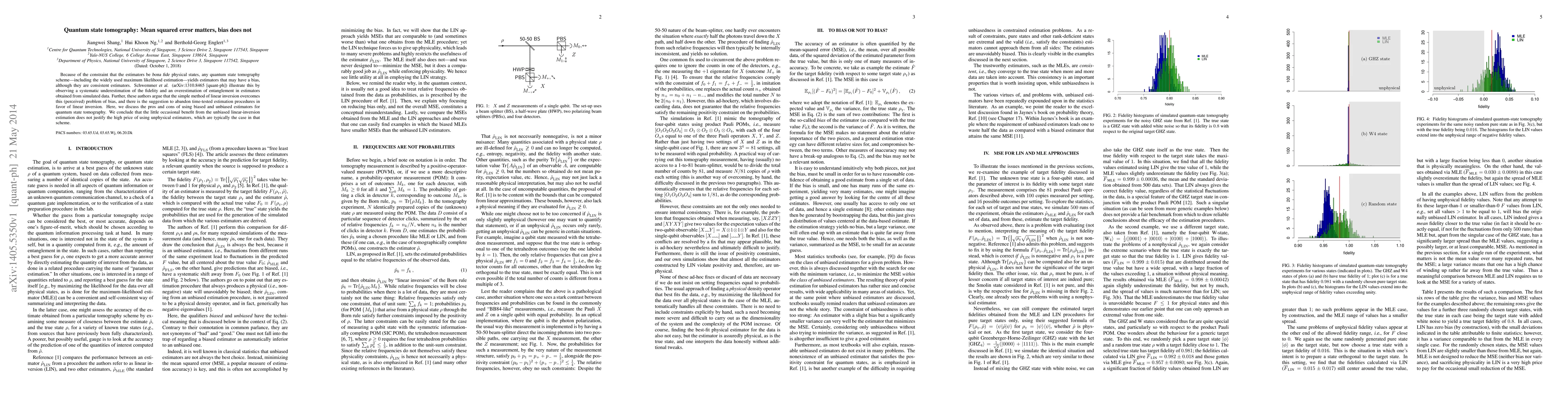 Because of the constraint that the estimators be bona fide physical states, any quantum state tomography scheme - including the widely used maximum likelihood estimation - yields estimators that may have a bias, although they are consistent estimators. Schwemmer et al. (arXiv:1310.8465 [quant-ph]) illustrate this by observing a systematic underestimation of the fidelity and an overestimation of entanglement in estimators obtained from simulated data. Further, these authors argue that the simple method of linear inversion overcomes this (perceived) problem of bias, and there is the suggestion to abandon time-tested estimation procedures in favor of linear inversion. Here, we discuss the pros and cons of using biased and unbiased estimators for quantum state tomography. We conclude that the little occasional benefit from the unbiased linear-inversion estimation does not justify the high price of using unphysical estimators, which are typically the case in that scheme.