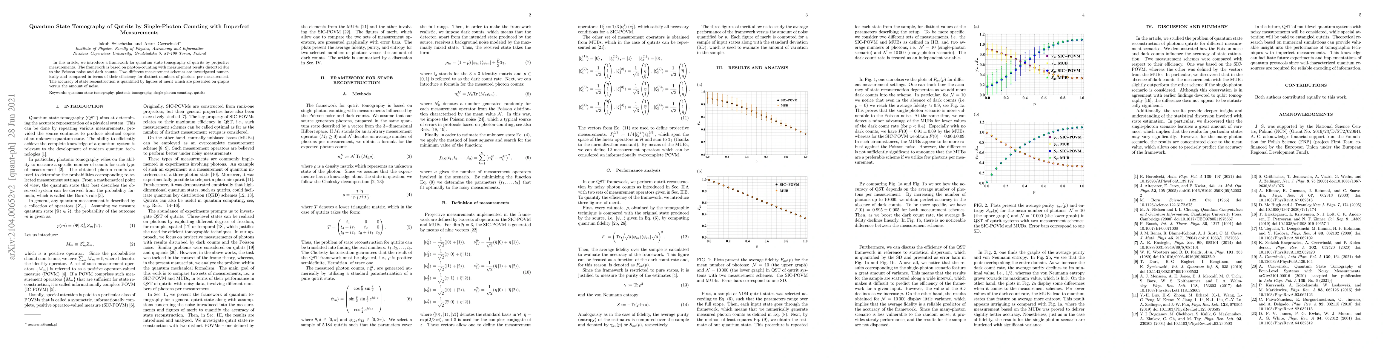 This paper presents a framework for quantum state tomography of qutrits using projective measurements with imperfect photon-counting, accounting for Poisson noise and dark counts. It numerically compares two measurement schemes based on their efficiency and accuracy, quantified by figures of merit plotted against noise levels.