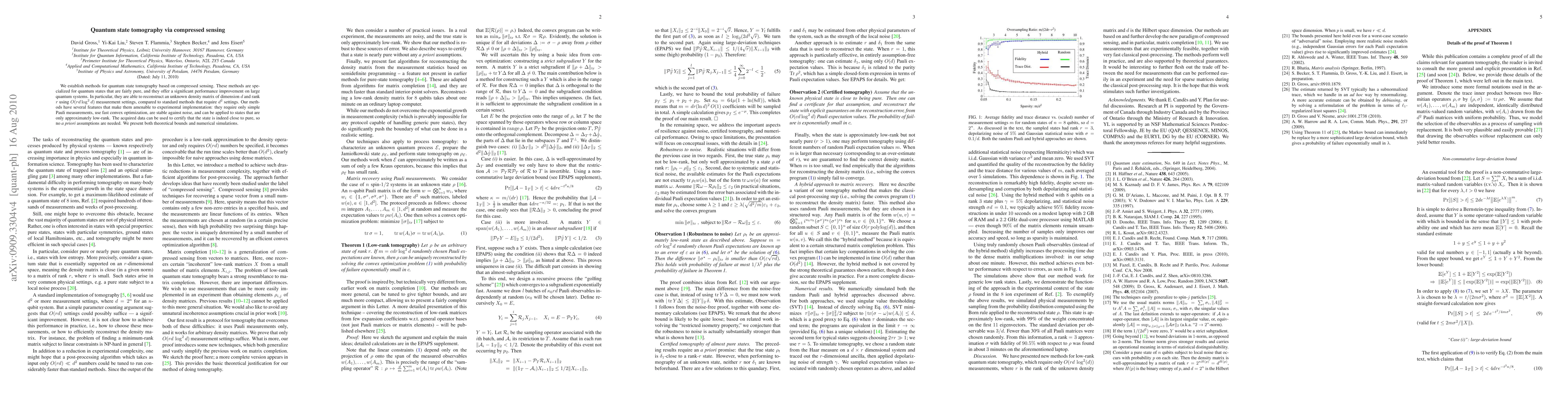 Researchers developed a new method for quantum state tomography using compressed sensing, enabling efficient reconstruction of large quantum systems with improved performance over traditional methods. Their approach offers stability against noise, simplicity in measurement settings, and certification of low-rank states without prior assumptions.