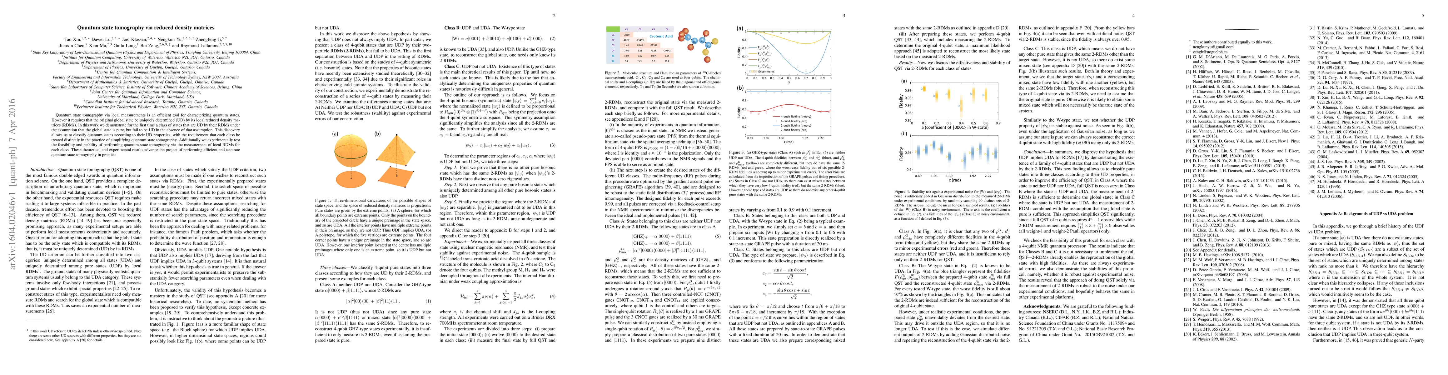 Quantum state tomography via local measurements is an efficient tool for characterizing quantum states. However it requires that the original global state be uniquely determined (UD) by its local reduced density matrices (RDMs). In this work we demonstrate for the first time a class of states that are UD by their RDMs under the assumption that the global state is pure, but fail to be UD in the absence of that assumption. This discovery allows us to classify quantum states according to their UD properties, with the requirement that each class be treated distinctly in the practice of simplifying quantum state tomography. Additionally we experimentally test the feasibility and stability of performing quantum state tomography via the measurement of local RDMs for each class. These theoretical and experimental results advance the project of performing efficient and accurate quantum state tomography in practice.