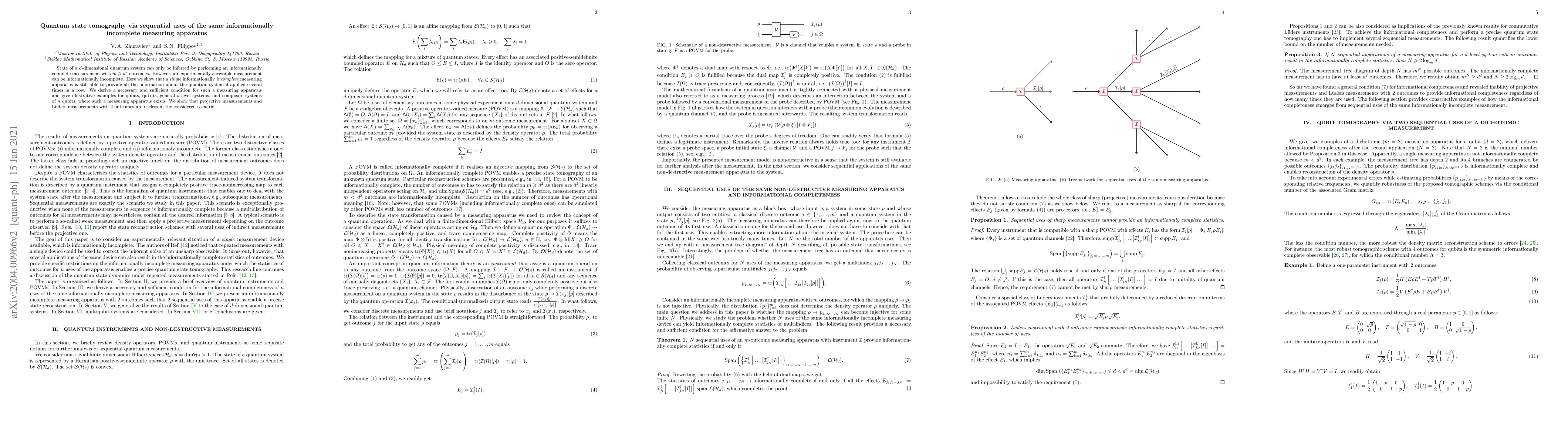 This paper demonstrates that a single informationally incomplete measuring apparatus can infer the state of a quantum system through repeated applications. It provides a necessary and sufficient condition for such apparatuses and illustrates their applicability for qubits, qutrits, and composite systems, while highlighting the ineffectiveness of projective and Lüders measurements with two outcomes in this context.