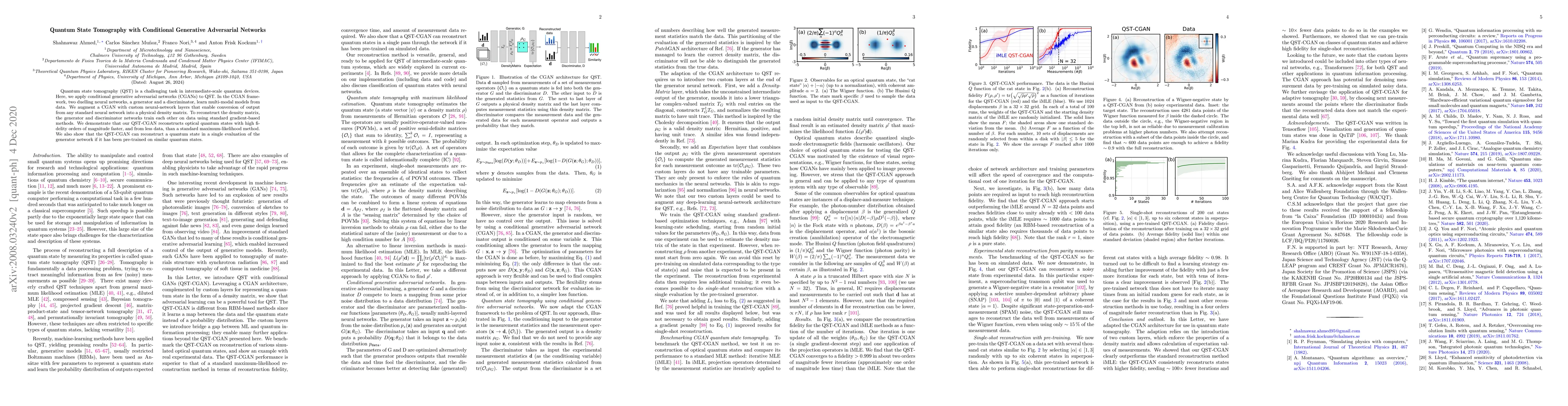 This paper proposes using conditional generative adversarial networks (CGANs) to enhance quantum state tomography (QST) by reconstructing density matrices from quantum data. The CGAN framework, with a generator and discriminator, trains on data to achieve high-fidelity reconstructions faster and with less data compared to traditional methods.