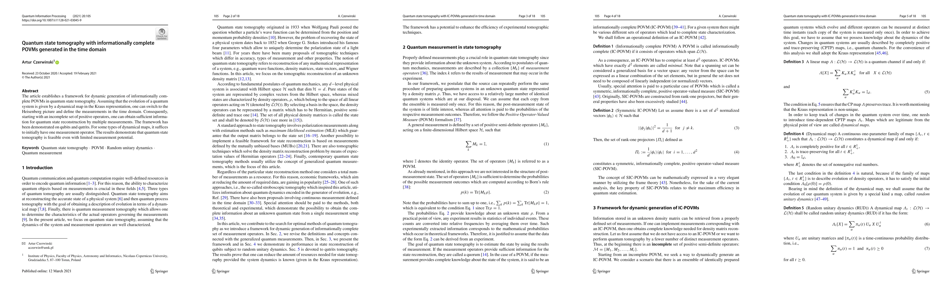 This paper presents a framework for generating informationally complete POVMs dynamically for quantum state tomography using time-domain measurements. It shows that even with limited initial measurement operators, sufficient information can be obtained through multiple measurements, enabling feasible quantum state reconstruction in systems like qubits and qutrits.