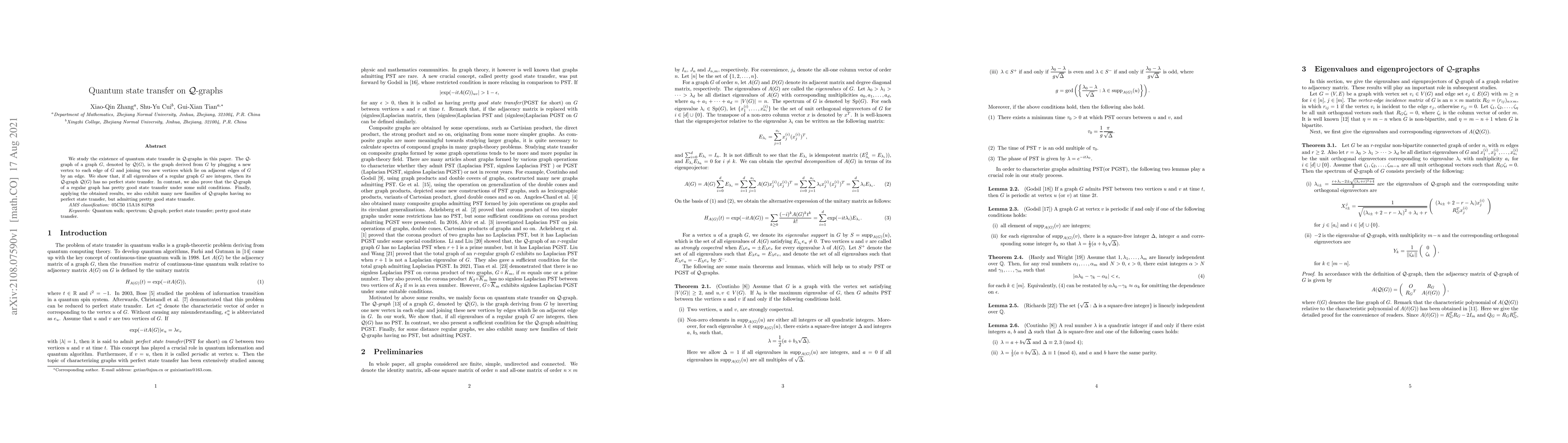This paper investigates quantum state transfer in $\mathcal{Q}$-graphs, derived from regular graphs by adding new vertices. It finds that $\mathcal{Q}$-graphs of regular graphs with integer eigenvalues lack perfect state transfer, but under certain conditions, they exhibit good state transfer.