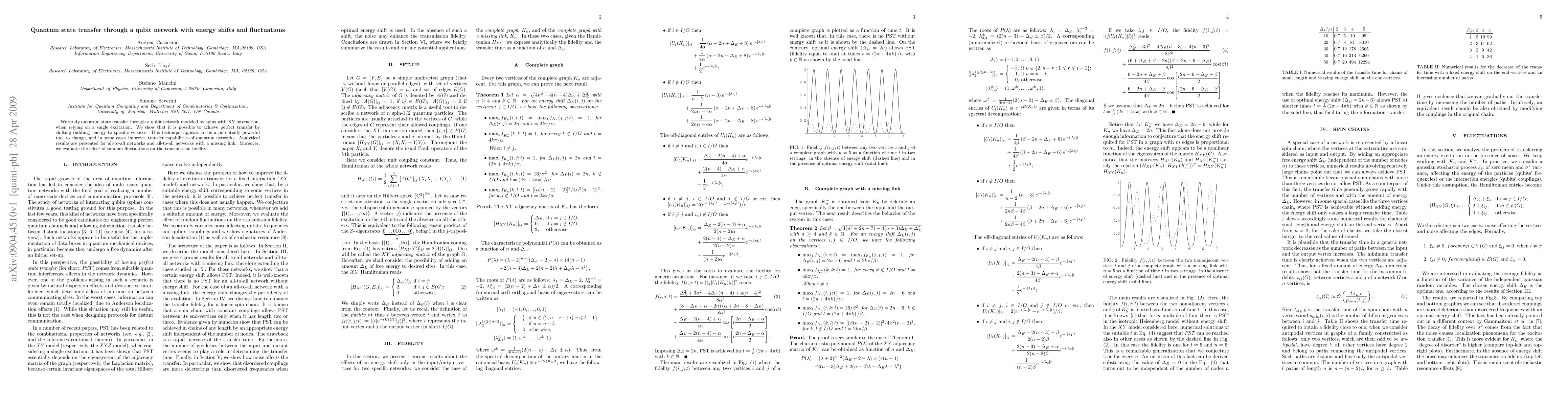 This paper explores quantum state transfer in qubit networks using XY interaction spins, demonstrating perfect transfer by strategically adding energy to specific nodes. It also examines the impact of random fluctuations on transmission fidelity, providing analytical results for both complete and partially connected networks.