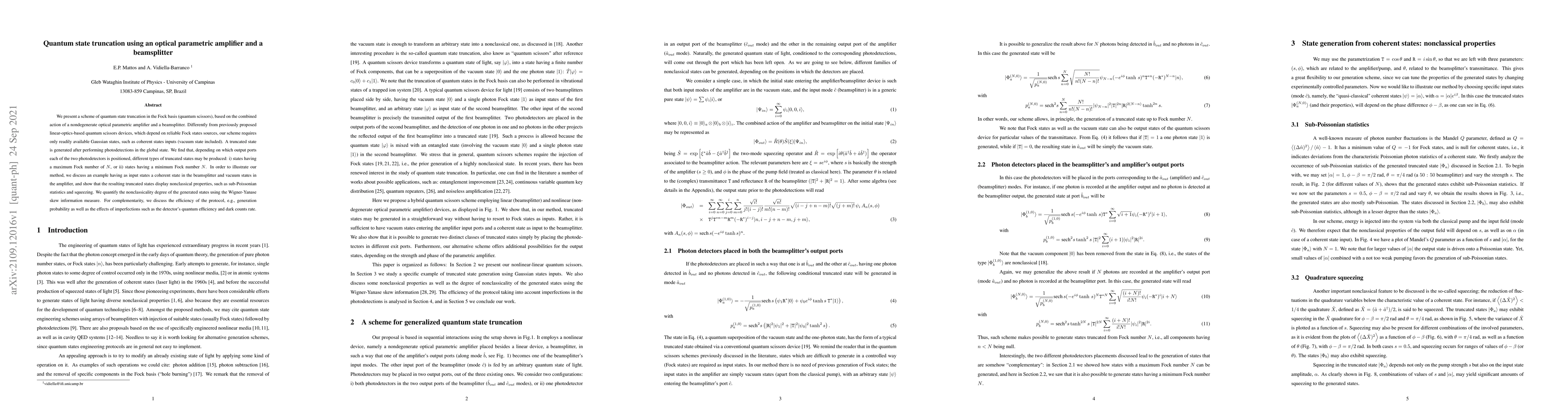 A new method for quantum state truncation using an optical parametric amplifier and a beamsplitter produces nonclassical states with sub-Poissonian statistics and squeezing, leveraging readily available Gaussian states.