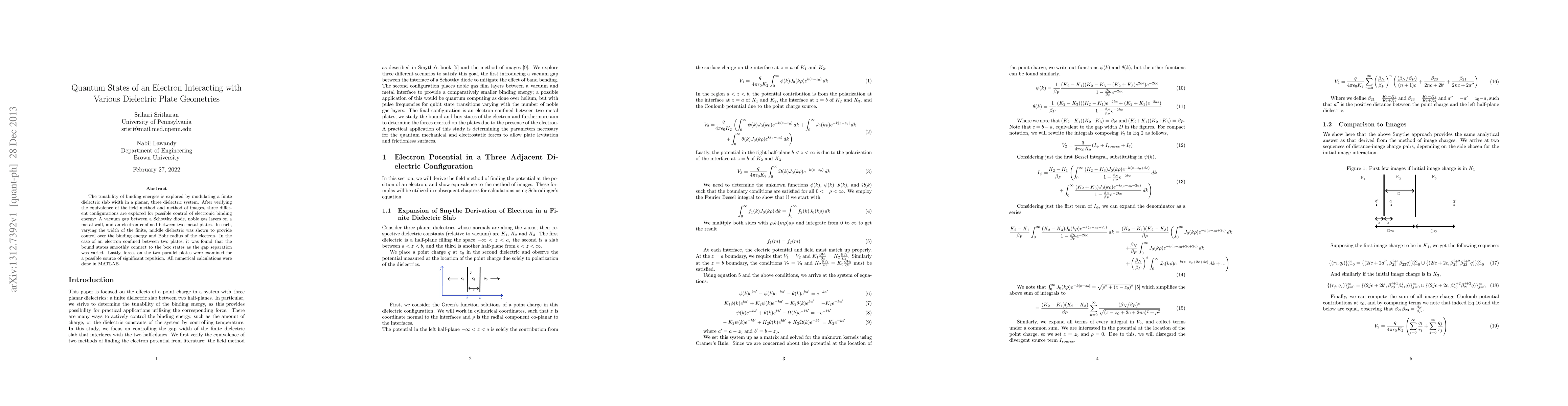The tunability of binding energies is explored by modulating a finite dielectric slab width in a planar, three dielectric system. After verifying the equivalence of the field method and method of images, three different configurations are explored for possible control of electronic binding energy: A vacuum gap between a Schottky diode, noble gas layers on a metal wall, and an electron confined between two metal plates. In each, varying the width of the finite, middle dielectric was shown to provide control over the binding energy and Bohr radius of the electron. In the case of an electron confined between two plates, it was found that the bound states smoothly connect to the box states as the gap separation was varied. Lastly, forces on the two parallel plates were examined for a possible source of significant repulsion. All numerical calculations were done in MATLAB.
