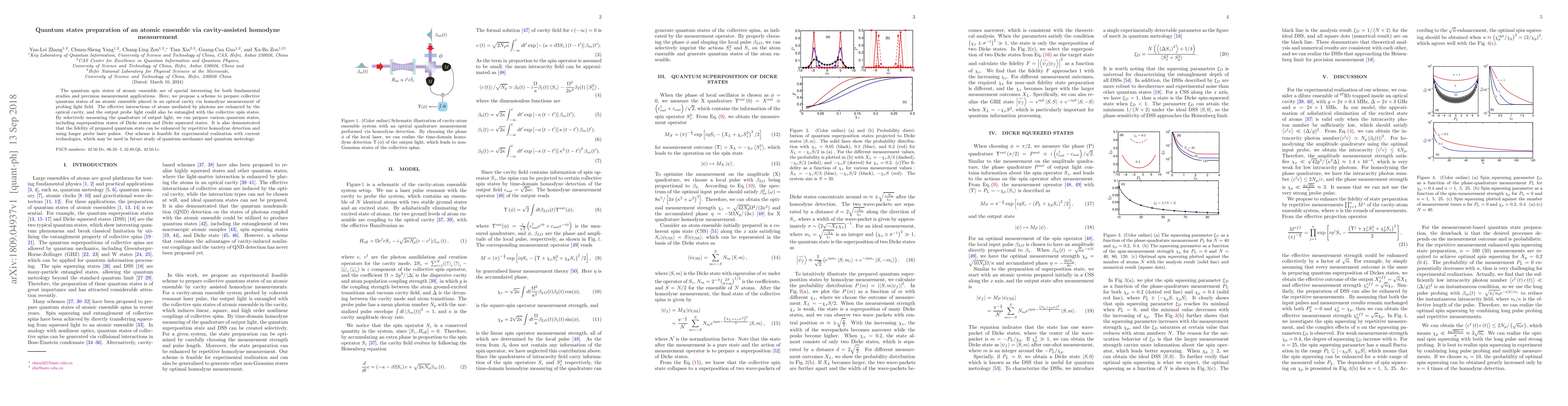 This paper proposes a method to prepare collective quantum states of an atomic ensemble using cavity-assisted homodyne measurement, enhancing atom interactions via an optical cavity. The scheme can prepare superposition states and improve fidelity through repetitive detection and longer probe pulses, making it feasible for experimental realization.
