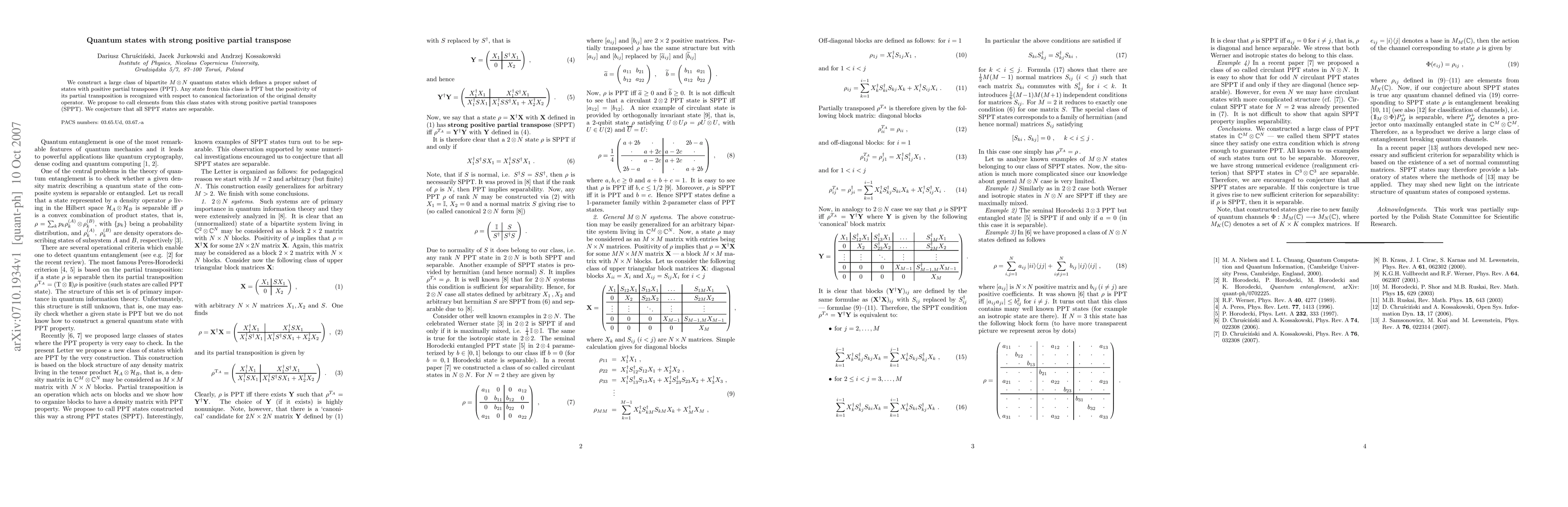 This paper introduces a new class of bipartite quantum states termed strong positive partial transposes (SPPT), which are PPT but exhibit positivity in their partial transposes under specific factorization. The authors conjecture that all SPPT states are separable.