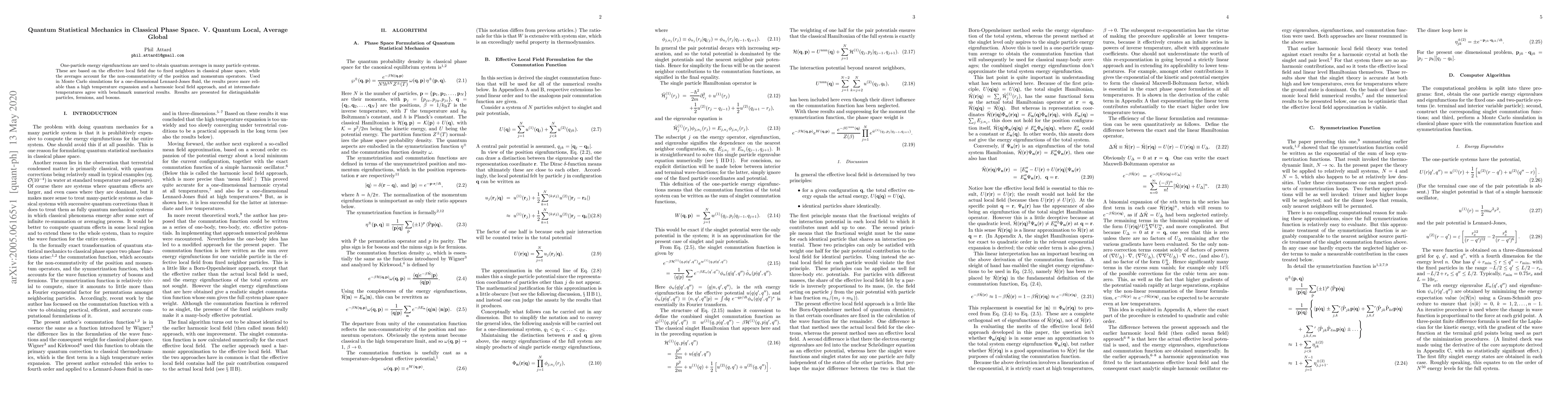 One-particle energy eigenfunctions are used to obtain quantum averages in many particle systems. These are based on the effective local field due to fixed neighbors in classical phase space, while the averages account for the non-commutativity of the position and momentum operators. Used in Monte Carlo simulations for a one-dimensional Lennard-Jones fluid, the results prove more reliable than a high temperature expansion and a harmonic local field approach, and at intermediate temperatures agree with benchmark numerical results. Results are presented for distinguishable particles, fermions, and bosons.