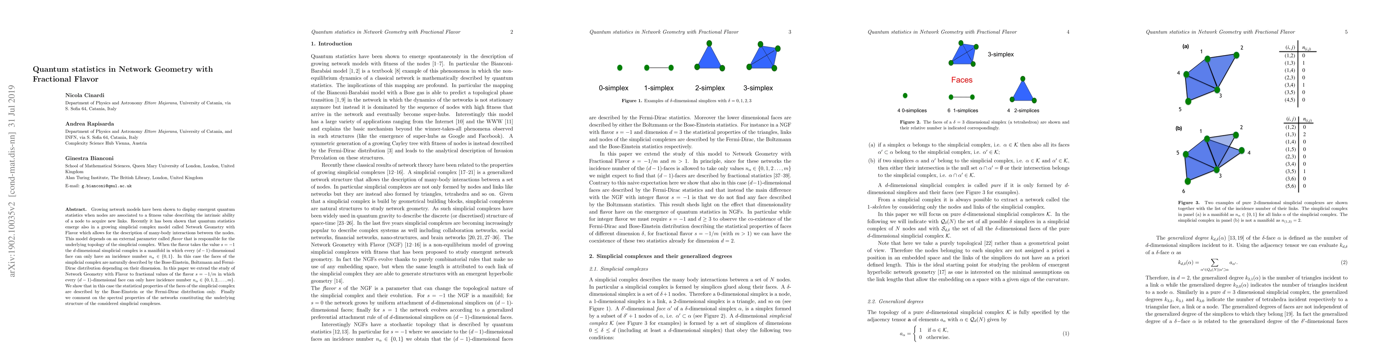 Researchers studied a network model called Network Geometry with Flavor, finding that when the flavor parameter takes on fractional values, the statistical properties of its faces are described by either Bose-Einstein or Fermi-Dirac distributions.
