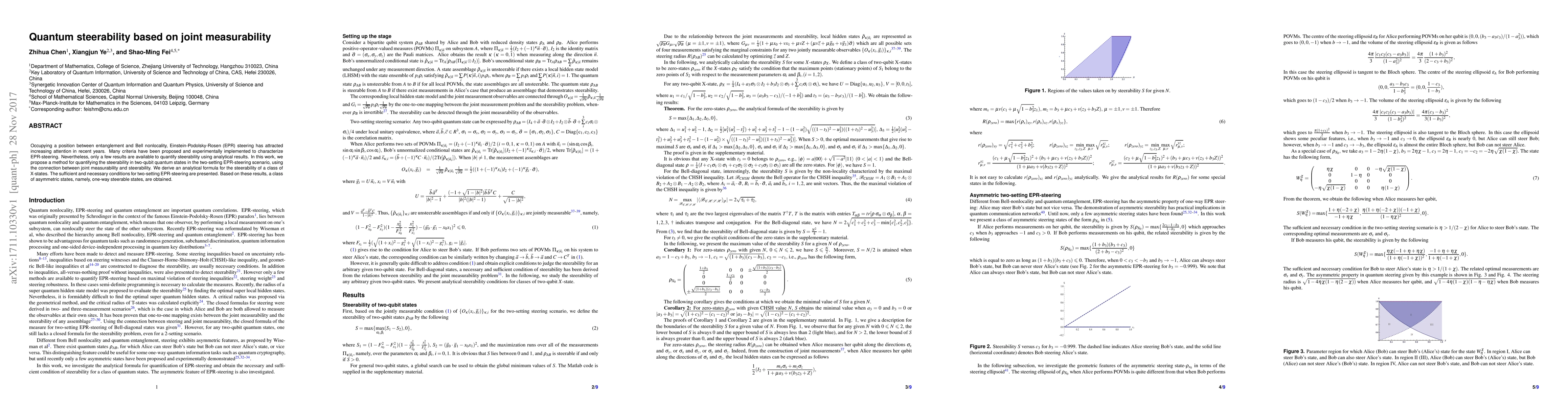 This paper proposes a method to quantify quantum steerability in two-qubit states using the relationship between joint measurability and steerability. It derives an analytical formula for steerability in a class of X-states and identifies one-way steerable states based on sufficient and necessary conditions.