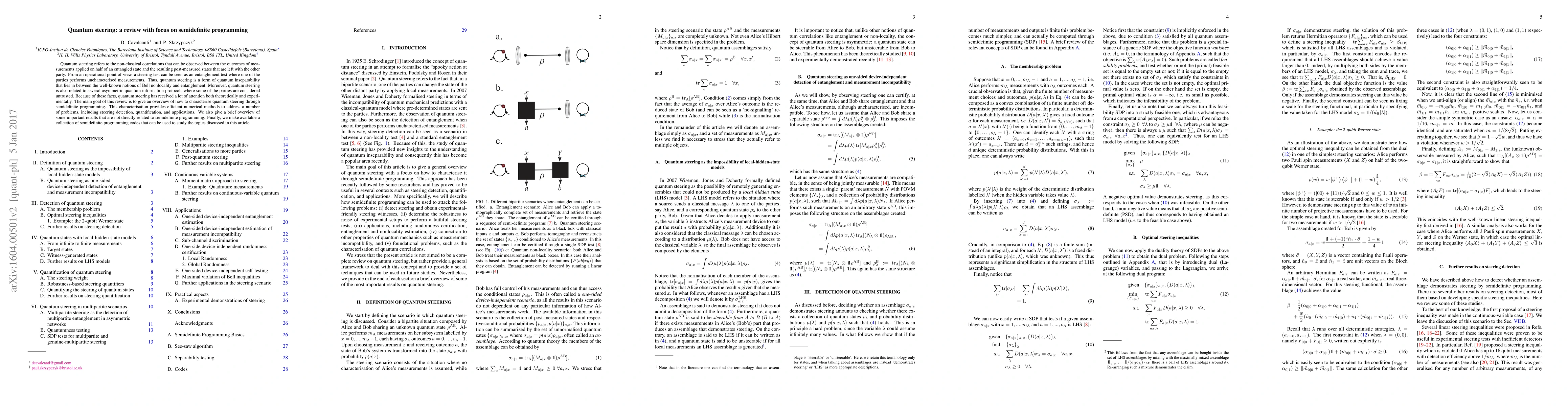 This paper reviews quantum steering, focusing on its characterization via semidefinite programming. It discusses how semidefinite programming provides efficient methods for steering detection, quantification, and applications, and includes a collection of relevant codes.