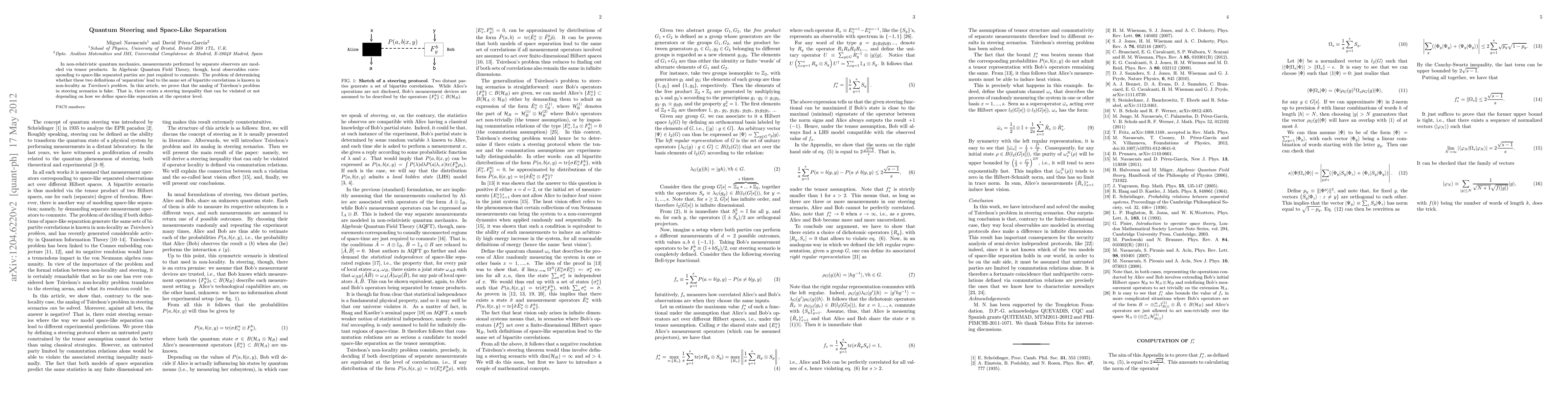 The paper introduces and solves the analog of Tsirelson's problem in steering scenarios, comparing two models of space-like separation in quantum mechanics and Algebraic Quantum Field Theory.